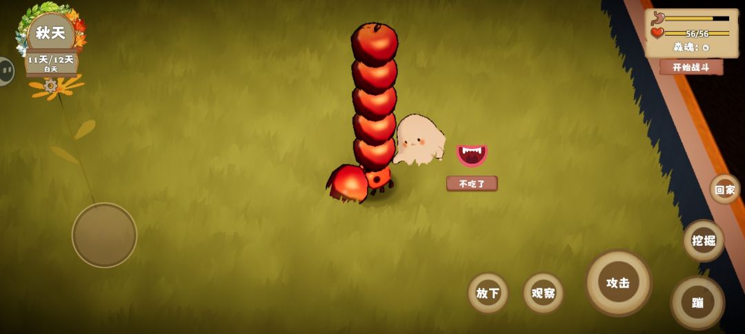 很好玩!治愈小游戏,一开始就为了第一天晚上的战斗收集了很多方块hhh,以为会很难打实际上没有,走到地图边缘才知道小瓢虫是住在一个花坛里,原本以为还能过马路去别的地图就使劲跳了好久,结果不行hhh,然后我发现如果嘴里咬一个苹果就可以突破5个物品上限能6个,直接回家嘴里的苹果也不会掉