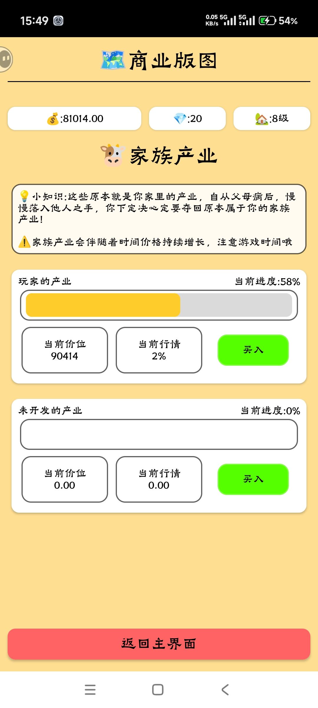 玩了两三个小时吧,疯狂点点点,点的我手疼。这个家产也不是非得要买,感觉后期炒股赚钱赚的也比较慢了。