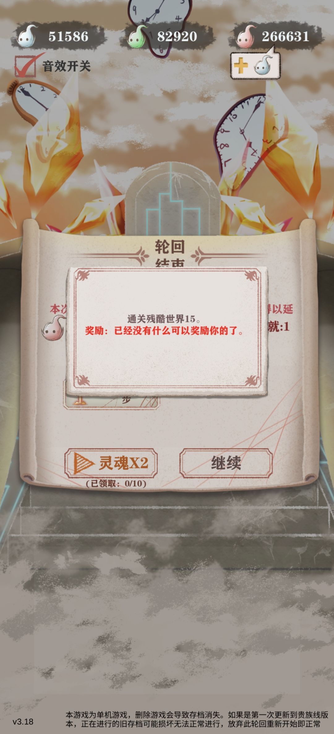 美中不足的是剧情上是固定死的,无论再怎么轮回,剧情永远是一条线,没法跳出这个框架,真的很遗憾,真结局也有点烂尾,打通后真的有种虚无感,为了新玩家的体验,我就不剧透了。