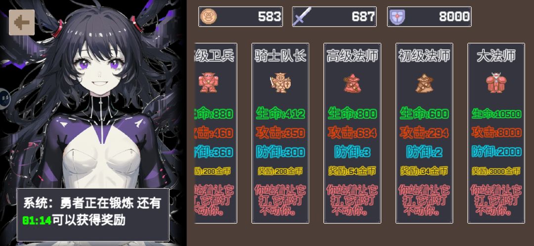 这塔操作手感稀烂,楼传用起来也有点搞,怪物手册没有地图现伤也没临界。塔整体非常简单,首先这个塔只要防杀哪怕没破防也能杀怪,系统的关于属性部分的加点封顶价10金币另外其实最后真魔王我也能破防就是加点太痛苦了。一点属性一点属性加防御要加到4000攻击要加到1000,剩下的靠临时属性升满后给的属性永久翻倍。不献祭公主,不杀大章鱼不杀魔龙防杀真魔王。