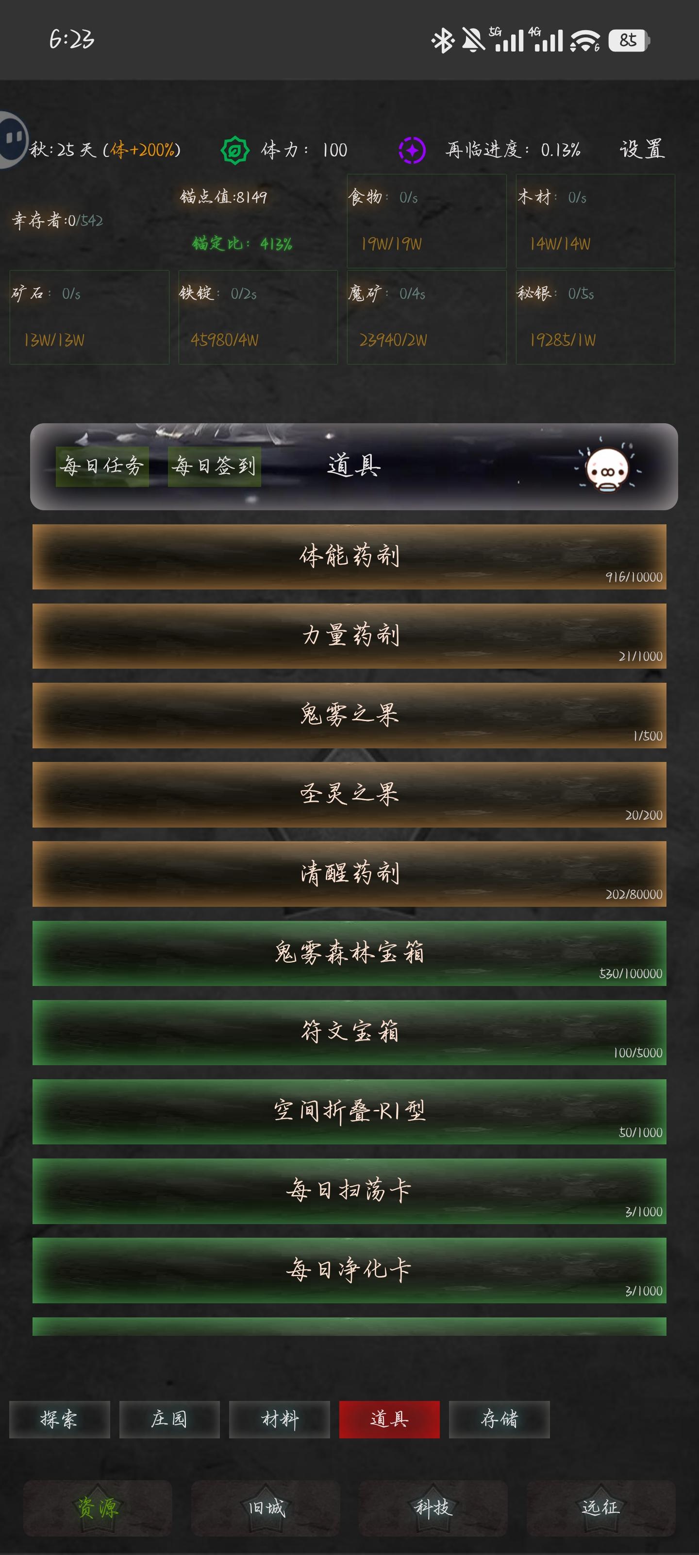 简单的一些游戏评价+一部分简单攻略官方给了很多兑换码,极大方便了新手度过前期的基建过程,并且需要看广告领取的福利都是免广的,相当于免费的福利,前期基建过程略微有些肝,后期偏向放置(因为之前玩过很类似的一款游戏,所以比较清楚,但是那游戏已经不更新了),游戏整体还是挺有意思的,氪金几乎也是不用考虑的(当然,可以的话也还是支持一下作者吧)锚定比﹠锚定值:首先游戏给了很多兑换码.兑换码里福利巨多,部分是后面才用得上的东西,前期最有用的就是增加人口的简易胶囊,全部使用可以增加三四百的人口数量,当然新手不要一下子全部使用,可以先5个5个用,在10个10个用,不要全部使用主要是因为“锚定比”与“锚定值”的存在,其中锚定值基本上可以不用去在意,核心的还是“锚定比”,锚定比这个名词我也是第一次听说,它的概念类似于“居民幸福度”“繁荣度”,锚定比至少保持在100%,各种资源的增长速度才会保持原本的水平,锚定比低于100%,各种资源的增长速度会打折扣,同时锚定比越高,各种资源的增长速度也是越高的,而人口的增加也会导致锚定比下降,前期如果一下子使用全部的简易胶囊,锚定比几乎会跌到0,资源也不会增长了,新手小白可能会一时间不知所措了。建议先使用几十个,人口全部加到锚点上,然后再大量使用人口分配:人口主要还是加点到锚点上,锚定比增加,会对各项资源进行加速,各项资源的人口有个二三十估计就差不多了,剩下的人口都可以加点到锚点上,最合适的锚定比是多少可以去参考一下其他攻略科技方面,基本上都可以学一下,除了科技点的消耗还有一些其他资源的消耗,兑换码基本都会给