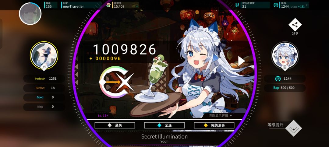 首先这个游戏我很早之前就下载过了(大概是在2025年6月份左右),当时是因为玩音游半年了,对音游很感兴趣,但是一个游戏一直玩,肯定也会腻的,之后就在 tap音游排行榜 上看看,有没有其他好玩的音游,结果就看到了这个,之前在哔哩哔哩也看到过这个游戏,所以顿时就来了兴趣。 我上游戏第一件事就是看看游戏主页整体设计,之后就毫不犹豫的点开 开始游戏,打了比较低等级的 1-3难度 ,熟悉游戏按键和玩法机制,因为觉得这个游戏玩法还可以,所以 就算 之后没有点开这个游戏玩的意愿,也还是没有把游戏删掉。 我花了三个多小时,完全熟练了按键,如下图所示,这是我打的战绩,敢相信?我玩这个游戏没有玩到一个小时就氪了金,挑了两个我想买的曲包,分别是音乐世界赛特斯(Cy)联动和游戏本家的曲包,音乐世界赛特斯玩过,所以这个曲包不用多说,不过本家游戏的曲包也非常可以,下面打的战绩我都是按照节奏和音律打的,越打越舒服,越打越流畅,这个游戏里面设计的元素很丰富,角色的设计也很丰富,特别是角色立绘,还有人设 。诶!!你还别说,这个游戏每全连一首曲的任意难度,都会送一个头像哦(≧▽≦)~~~头像就是这首歌的曲绘,买曲包也会送主题背景和个人主页背景,这方面做的算是很到位了(๑>ڡ<)☆