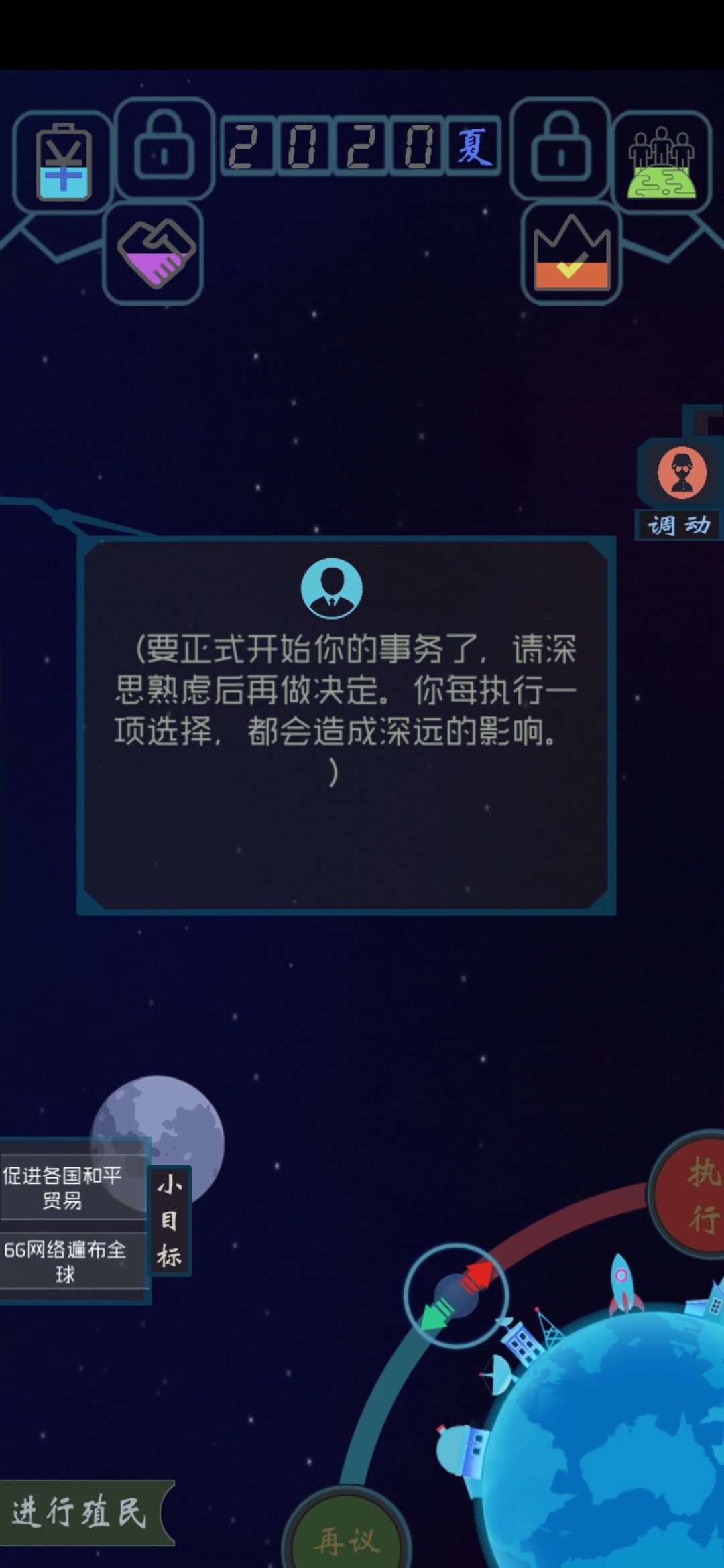 通过该事件后,【月球殖民地】就会常驻在殖民地列表,但每次开新对局时依旧需要消耗属性才能进行月球殖民