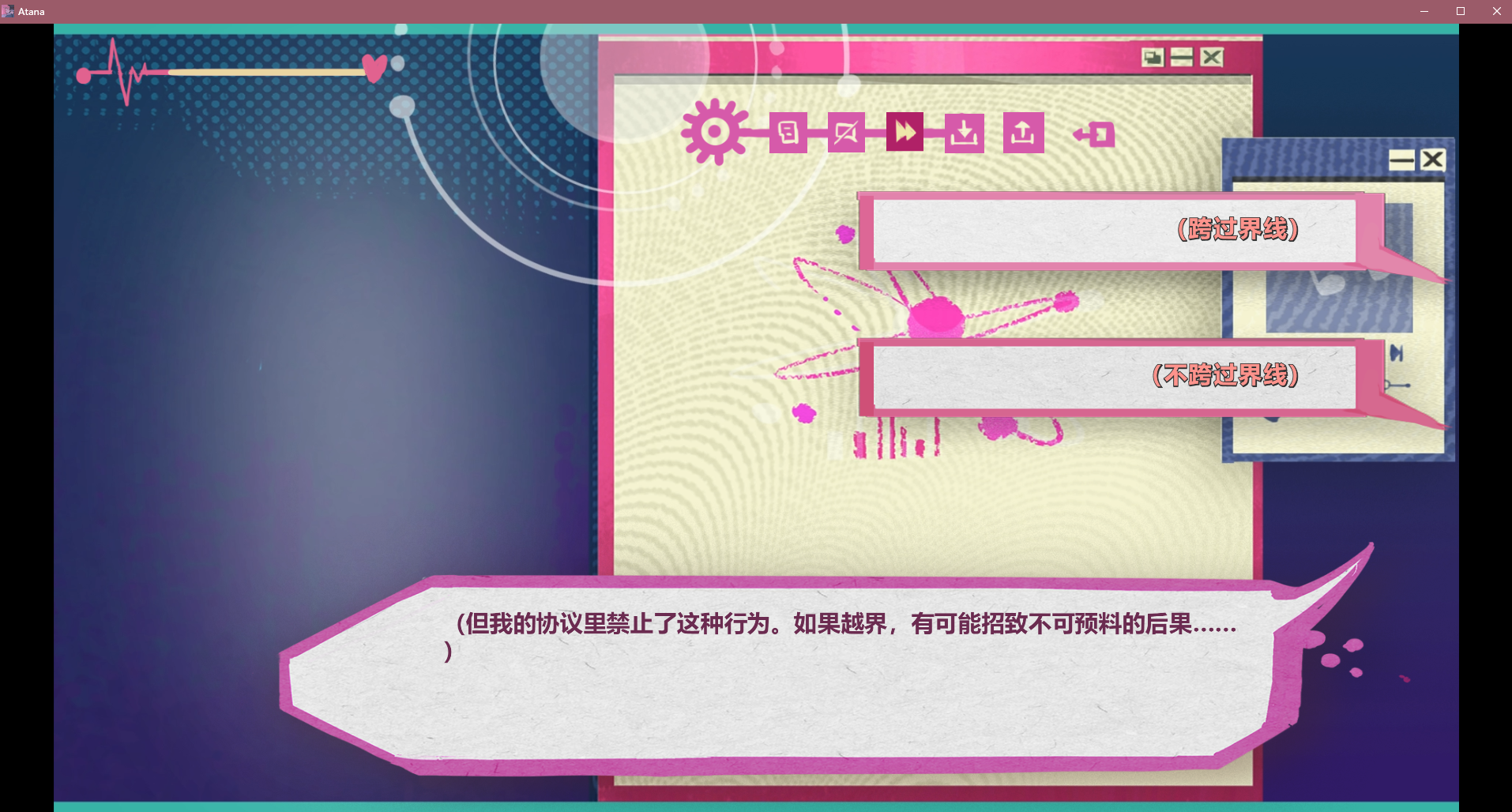 纯文字冒险游戏,剧情看点很好,主角创造出了有自我进化逻辑的AI,随着故事推进,会产生很多选项分支,最终AI的命运如何由玩家选择决定。剧情看点很多,如情侣日常拌嘴、生死时速、生化危机、黑客帝国等桥段都有,脑补空间很大。