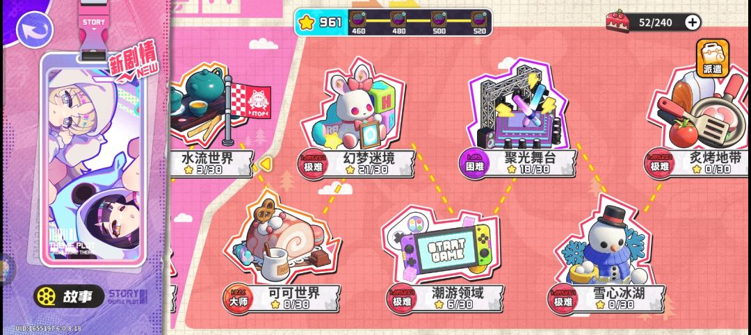 有剧情很短纯轻松日常可跳过(我都跳了),剧情和关卡独立分开,可以一直战斗。日活只需2分钟