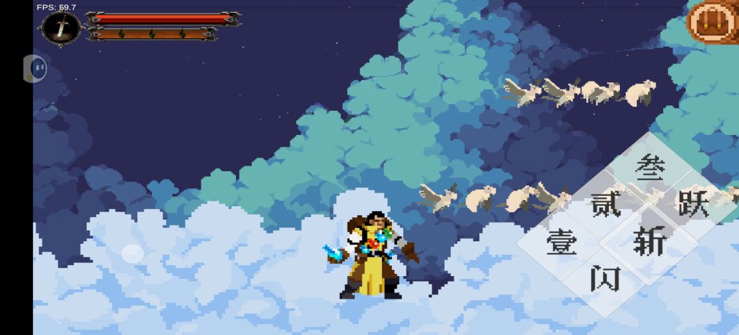 这个技能由宝石搭配的设定很新颖,我也很喜欢,但是按键不能自己改位置,玩起来很难受。然后就是不能对着商店那个人使用踏影裂空斩,有概率影子会掉到下面去,然后你再放第2段就会卡到画面外,而且是按了卡死进入下一关都没用,会一直在画面外。