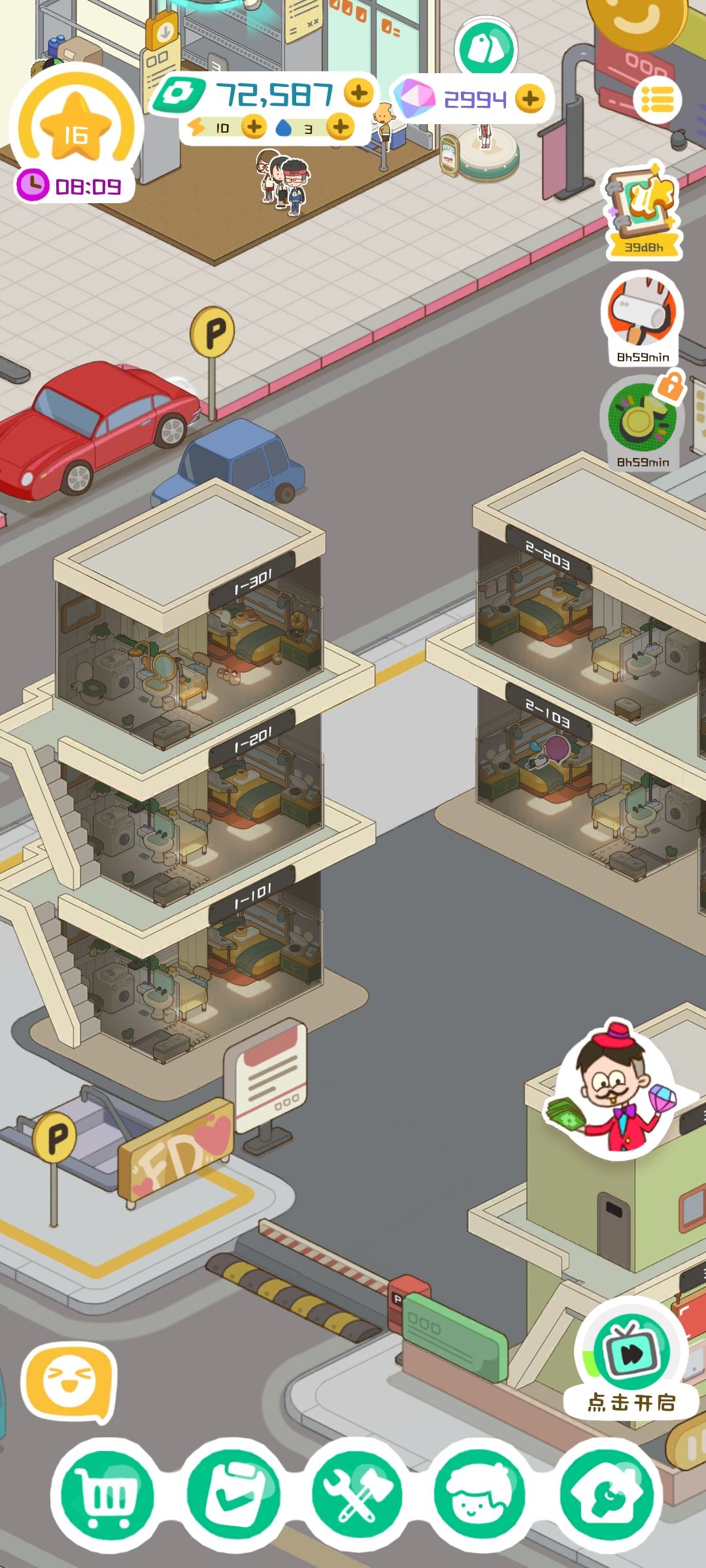 玩法很简单,喜欢慢慢来的有福了。主要就是挂机,赚钱,装修租客的房间、周边娱乐设施,挂机,赚钱。偶尔看看租客日常,很治愈。给东西很大方,看广告获取一切!虽然大多是跳转广告,在我看来,瑕不掩瑜。