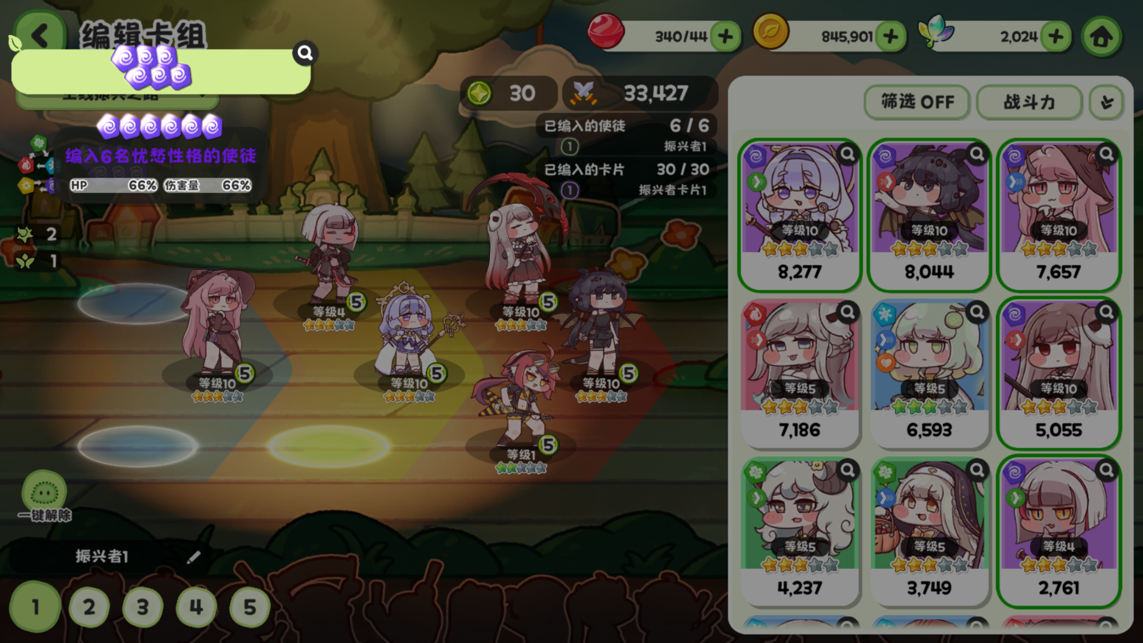 编队方面我个人还没搞懂前中后位怎么安排比较好,但可以确定是同属性队伍最强。比如两个暗属性是6%血量和6%伤害加成,四个暗属性这比例就到了28%,六个暗属性则来到了恐怖的66%!因为开服卡池up的是暗属性角色,我便也围绕她玩暗队。哪怕凑不齐6个同属性,用4+2的属性去配队也有可观加成了。