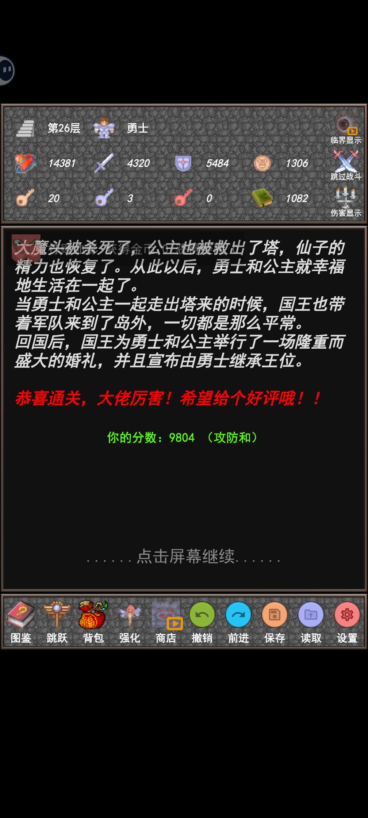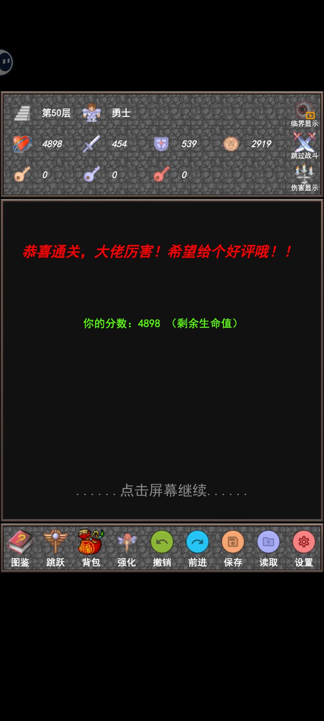 地上20层商店买攻击+70经验升级,地下商店先买攻击到700多够破防,再加防御能无伤打红骑士,后续适当补攻击能
