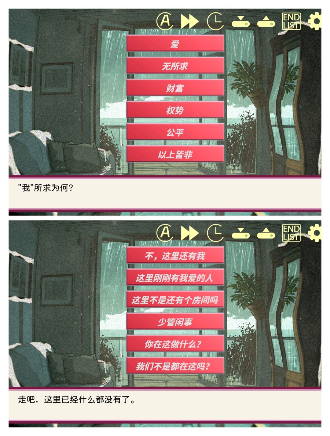 剧本悬念层层递进,反转设置巧妙。玩家的前期选择会像蝴蝶效应一样影响后期剧情,增加了重玩价值。游戏更融入了打破“第四面墙” 的元叙事设计,引导玩家反思“玩家”与“角色”的关系。