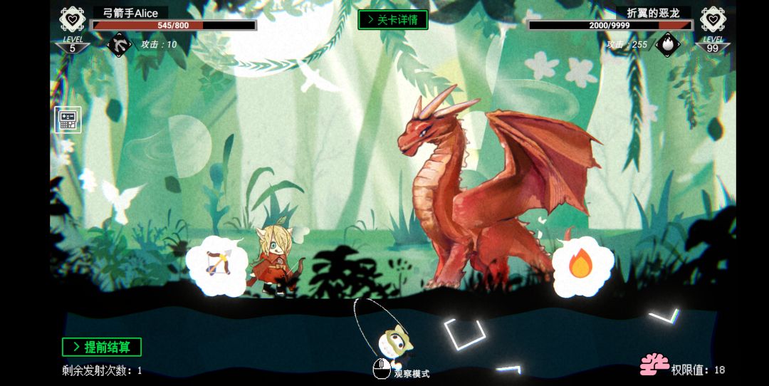 偏休闲的弹射类玩法,策略性和可操作性都很好,每一局的道具位置随机,弹射拿到道具会影响到上方的战斗,让主角最终胜利即可进入下一关。打到的白框会变成权限点数,针对持有道具或周边道具进行改良,向着策略最优解靠拢。有教学引导内容,介绍有些简单,道具规则还需要看文本和画面表现,摸索理解一下才能完全搞懂,有少许学习成本。