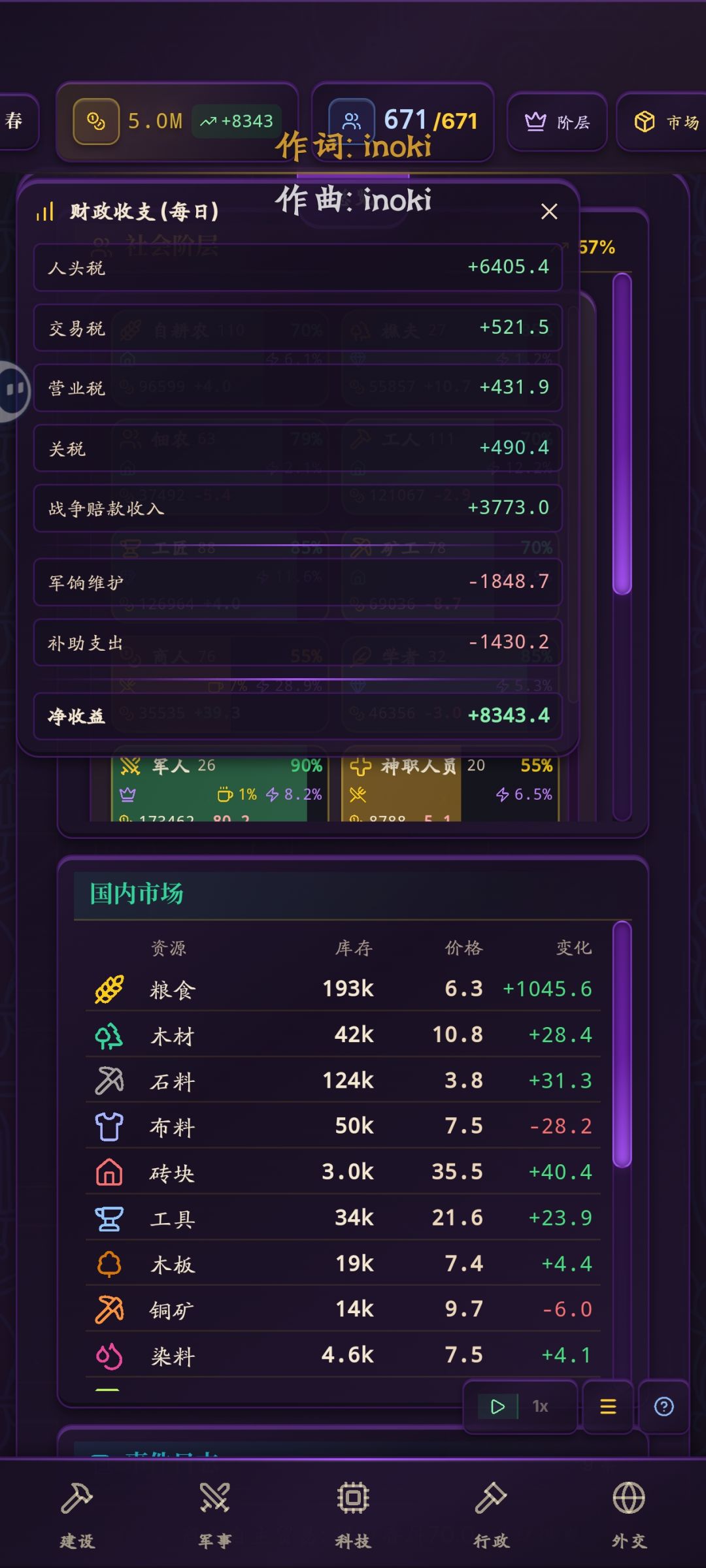 7️⃣这时会发现商人简直是暴利,别人都赚3-5,商人能赚20-400,狠狠给他们加人头税,让他们收入在10左右就行。引发阶层不满就减税、收买,平静之后加回来。我的商人一直是温饱水平,保证他们不闹事就行