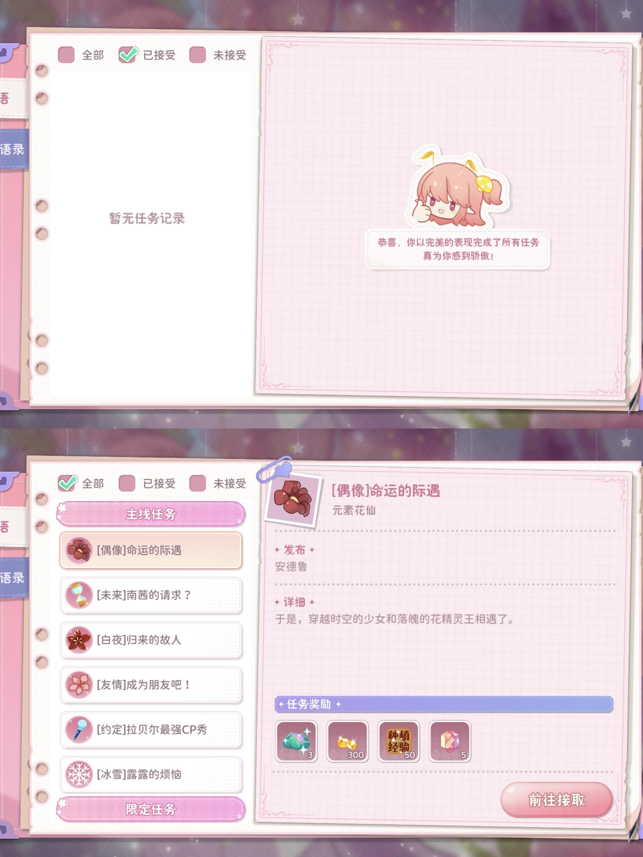 玩了一会儿感觉还是有点不太舒服的首先好多活动之类的手游端都看不了而且作为一个来怀旧的玩家,很多内容我已经忘记了,感觉没有很好的新手指引,完全不知道要干啥,内容又太多了,一个下午都在pc和手游里反复横跳,玩的好痛苦😭遇到的bug做塞拉的新手指引的时候,因为不会收花试图登陆pc端回忆,结果这一下给我卡住了,最后只会在pc显示任务进行中,但是却交不了任务,手游这边直接连任务也看不到,也没有奖励,就这么卡住了,重登多次也没有办法解决,pc端的状态如图遇到的问题采集的东西在右手边的时候,很容易判断成移动而无法准确采集到,希望可以小小调整一下自动键位范围且没有小花宝,我登陆pc之后才出现,之后再登手游就有了,感觉这个应该后续会继续优化还有小游戏也还没有上,感觉手游上能玩的还是有点少,或者说不知道去玩什么,我个人习惯是跟着任务走,每日任务中有一些是手游端无法完成的,且我新手指引给卡没了,真的很难受😭希望能多加一些新手指引,在各种活动里面都加一下,好多东西真的只是看着眼熟,但是完全忘记流程了,希望之后能稍微加个慢慢开图的过程且我对安德鲁那个每日占卜印象很深,在手游里也是还没法进入,我记得小时候老是天天期待占卜结果,也是很怀念了游戏登陆的时候也会经常登上又卡出来,开小窗也会直接掉线,不小心退出哪怕很快就切回来了也会重登,还有做完任务打开任务面板是卡住一直转圈的情况,遇到这种情况我就只能重登,反复重登真的很累😭感觉目前手游只适合挂挂机,捡点小垃圾,种花和刷任务,活动相关的东西依然要通过pc端才能玩,还是有很大改动空间的,且因为手游上后和pc端互通,希望以后能多多返场一些活动,让大家尽量能获得喜欢的物品二编!!!!还有花园布置!!!好多东西都移动不了,放出来在哪就在哪,且我又开了个新号做引导任务,结果在南茜换帽子之后就卡住了,我大概明白我第一个号引导任务为啥卡住了,因为我提前换了咖啡猫咪帽,现在一号直接是属于连引导任务都没有三编昨天晚上更新一部分内容上号后,又显示任务了,但是要重新种,中上之后,早上起来任务又消失了。。。而且昨天过了12点之后不能登陆游戏,且昨晚的时候帽子的问题还没有修复。。。我已经看到好多人在提这个问题了,这个东西真的很影响体验。。。优点画面音乐以及立绘还和小时候的一模一样,真的很喜欢这种感觉!!!而且画面更加清晰,移动也很灵敏很丝滑!!!来怀旧的真的会很舒心!!!还是很好的!!!真的希望小花仙能越来越好!!!