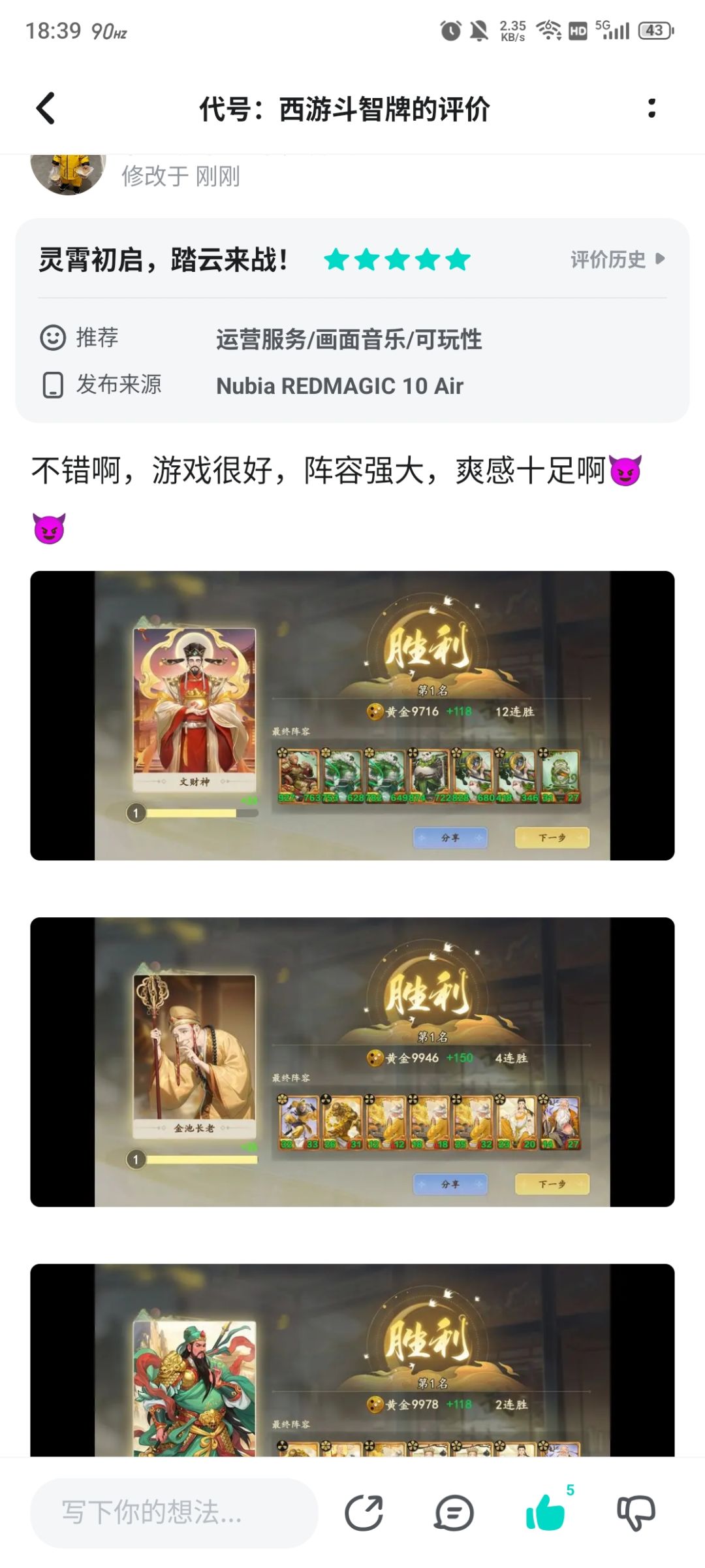 不错啊,游戏很好,阵容强大,爽感十足啊😈😈