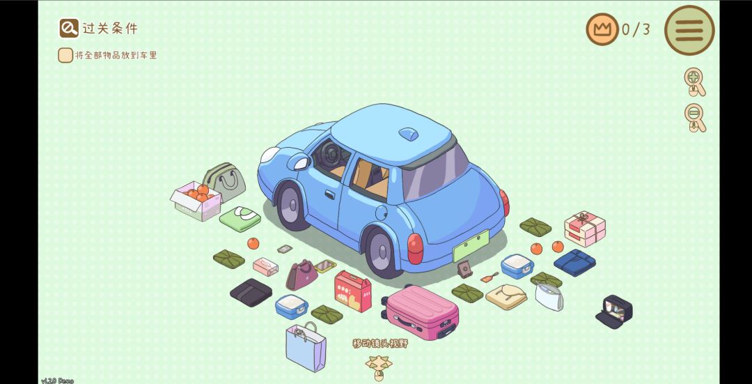 以关卡制进行游戏,难度梯度设计很好,最初的关卡只有场景的一部分,由浅入深开始整理整个场景。关卡通关并不困难,摆放的自由度很高,通关检测条件比较简单,但寻找隐藏物品比较困难,关卡大部分时间是在思考如何摆放,以及对每一种物品进行探索。