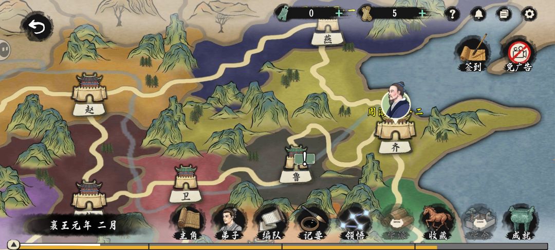 有世界地图的概念,主人公周游列国,每到一个国家可以进行论道(战斗)来收集经验、声望等资源。也会有一些事件发生,可以收弟子。剧情任务在地图中有叹号标记,基本不会走错。