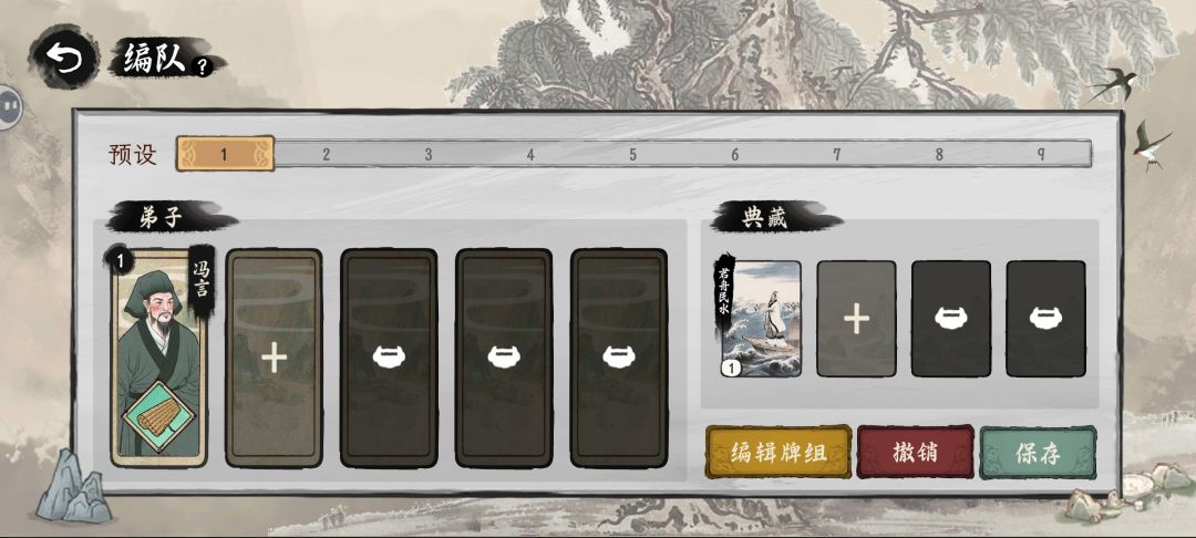 阵容也是可以自己编辑的,弟子位置需要解锁才能使用。单次战斗用一组阵型,若遇到连续战斗,需要配置多个阵型编队,对于弟子和收藏的需求量很大,搭配方面策略性很丰富。