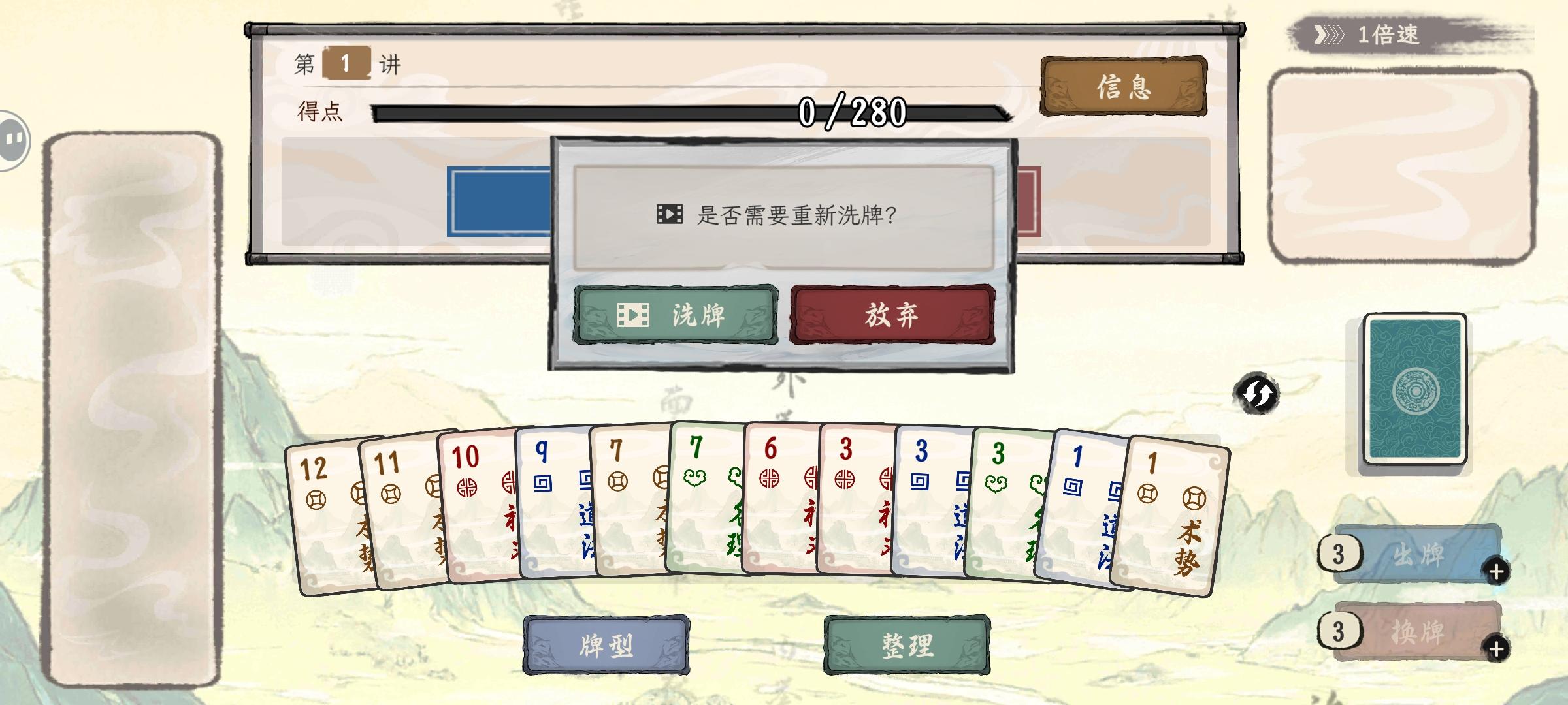 🎮可玩性:核心战斗在小丑牌的规则基础上进行扩展,牌型规则更加丰富,且操作易用性很好,可以打出的牌型有提示,不至于出错。战斗外也可以自己编辑牌组,有点牌组构筑的意思,支持推荐阵容一键操作。阵容也是可以自己编辑的,弟子位置需要解锁才能使用。单次战斗用一组阵型,若遇到连续战斗,需要配置多个阵型编队,对于弟子和收藏的需求量很大,搭配方面策略性很丰富。有世界地图的概念,主人公周游列国,每到一个国家可以进行论道(战斗)来收集经验、声望等资源。也会有一些事件发生,可以收弟子。剧情任务在地图中有叹号标记,基本不会走错。🕹️耐玩性:养成包括主角、弟子、领悟三部分,主角的经验通过完成记要任务获得,产出相对固定。牌型也可以增强,这方面和小丑牌比较像。弟子有多人,不确定最终会有多少名,一个编队最多五名弟子外加四个典藏,有较大的组合搭配空间。单个弟子可以升级、装备宝物、破卷典藏,其中破卷是需要时间的,每一本典藏所需要的时间也有差别。领悟类似天赋树一样的功能,分四个类别,对应牌型类别,领悟点数很有限,投入有选择策略和倾向性。🌃画面音乐:2D水墨画风,界面结构布局合理,UI品质较高。城内的场景类似画卷效果,可以左右切屏查看事件,场景也随之变化。角色造型类似孔孟那种古书人物的感觉,带有一种沧桑感,与论道的题材倒是很符合。论道战斗部分界面同小丑牌很接近,有游戏经验的话可以很快上手。出牌、弃牌、结算等都展示很清晰,意思表达准确,理解很容易。👑世界观背景设定是诸子百家争鸣的时代,各种思想在碰撞,大街上就能撞见法家和儒家在争辩。主角设定为一介隐士,得到神秘老者传承之后开始论道,感觉有点像孔孟,都是带着弟子去周游列国,边走边收人和论道。🔖运营服务:纯广告变现,战斗前可以看广告重新洗牌,其他需要看广告的地方比较少,且都是激励视频,可以选择不看,没有烦人的插屏和常驻广告。所有存档看50个广告之后就可以使用免广告功能了,类似永久去广告的效果,优惠力度很大,值得拥有。