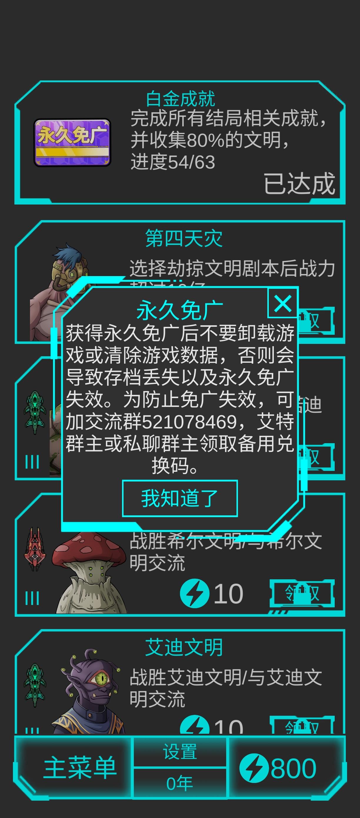 也是拿到永久免广了,顺便写个评论谈谈自己的感受,首先就是作为一个打发时间的小游戏,本身还是合格的,虽然剧情比较老套但也还好,对于新手的忠告就是把远古移民买了,这个特性可以说是最为超模的了,然后把遗迹出现概率拉到最大,只要运气不算太差初始碰到恶意文明通关是没问题的,可玩性个人给到合格甚至是不合格的,因为我打到现在,每把都是最后才给我曲速引擎科技,中期完全是在和灭绝者赛跑,而且因为这个沟槽的研发机制导致你前期不是在种田就是在种田,然后到后期拉出来几千舰队给对面干死。评论区也有别人说过这个研发的问题,我的评价是尽管制作组说没有暗改,但是就冲我打这十几盘的情况来讲,这个研发机制绝对是拖玩家后腿的,甚至会出现我曲速科技都研发完了,它给我蹦出个高级电磁学的问题。而且突发事件也有诸多的不合理之处,比如人口老龄化,不拿资源填的话直接少一亿人口,还有要拆你5%舰船或者减你科研的事件。总之就是,可以玩,但是可玩性什么的绝对没有同工作室的鼠鼠好玩。也不推荐别人,除非你只想打发时间,在玩完之后你只会感到很空虚。另附:制作组赶紧把那该死的研发刷新机制改改,有时候真能给人气笑了。