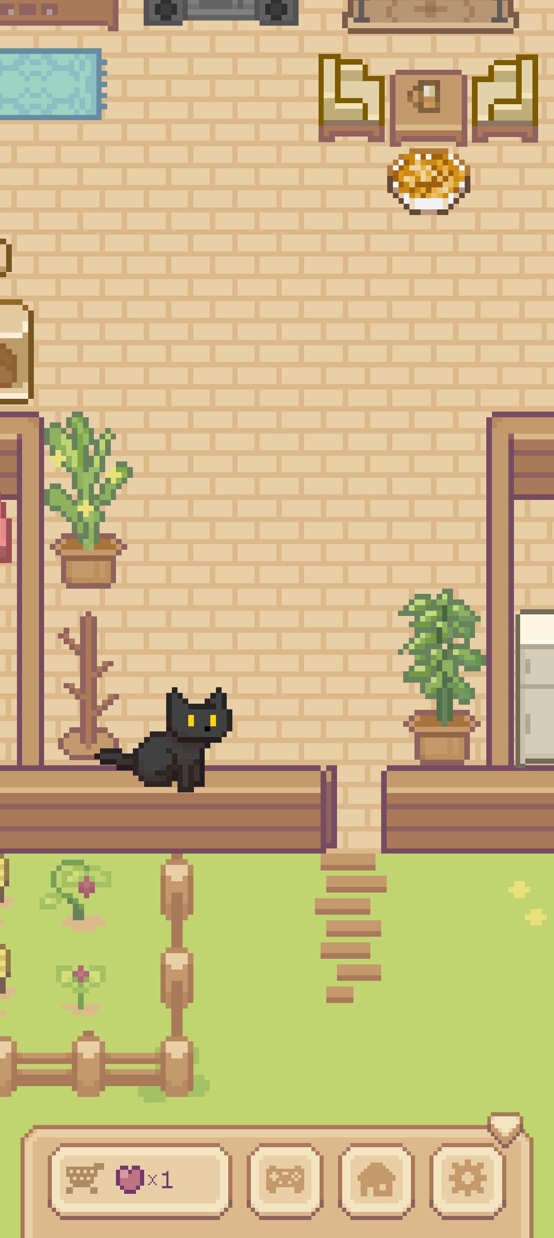像素风好评!😈是个很轻松养老的放置游戏,纯放着就好了~记得给植物浇水,可以连浇两次;猫困了开屏一下就能睡满;中心的猫盆变透明了就是空了,点一下再点弹出来的界面上的一个点就能补满;猫玩累了后,逗猫棒和小老鼠都不能吸引猫了;摸摸猫应该只能摸一下,摸多了大概要炸毛了。剩下的就是放置就好了~😈