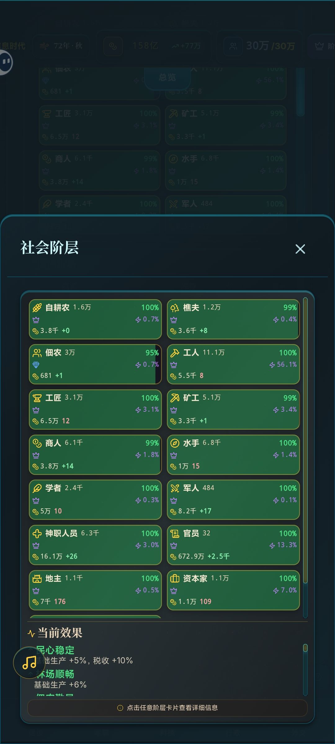 但玩着玩着就成了水多了加面、面多了加水的无聊模拟器。后两个时代属实无聊,没有发展的欲望,直接72年速通信息时代了。