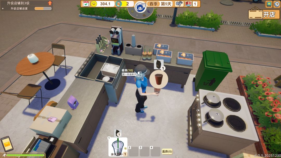 备货也是一门很重要的学问,理论上我们多囤货很正常,但是厨房空间有限,所以只能优先补充量少的。但是拿出来加热过的“珍珠”等物品又会有一定的保质期,玩家不能准备太多。最重要的是,玩家无论是想多赚钱还是想要尝试新产品的利润,一定要优先把想卖的产品放到菜单上,不然我第一次做的冰淇凌竟然就那么孤单地放到了变质。