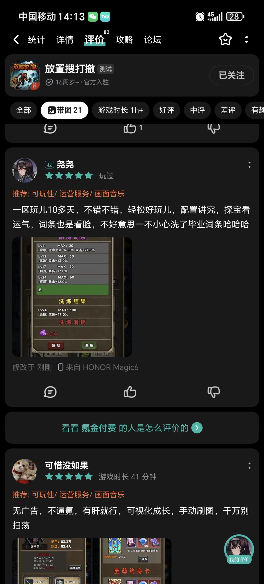 玩儿十多天啦,从星火平台进的,时间统计也不准,反正一直挂着滴。轻松,是真的轻松,不过首区晚了两天,目前还在追赶刚刚到排行20。最大化收益是关键,期待后面更新更多玩儿法😃😃😃还有一不小心刷了一条毕业词条哈哈哈