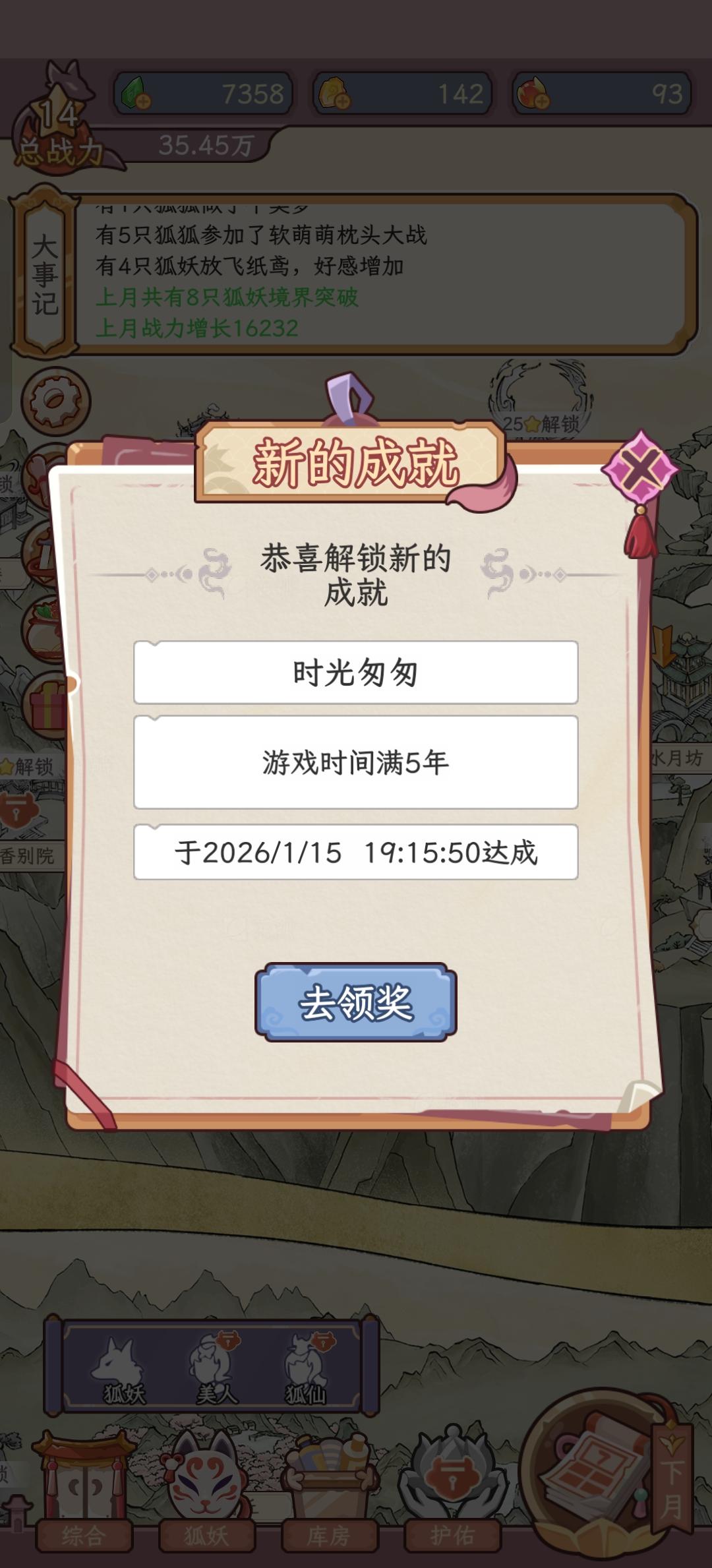 其实看到你游还记得我的时候很惊讶,就突然想过来写个评价。哦,我不是托,我就是普通玩家,所以呢,我的评价里面会有一堆我自己的碎碎念,而对游戏整体的评价可能偏少,只是我个人一味的抒发感情。先说评价就是一款非常好的休闲游戏,你很休闲很闲很闲很想打发时间,或者你只是单纯的想找个游戏玩的时候,就可以来试一下,就挺萌的,挺治愈的。有一些养成的也比较耗时间而已,送的还挺多,嗯很适合打发时间,嗯,如果想当主游玩的话,也未尝不可,反正他这个跳跃也挺好的,就是有点枯燥,但是越养越有成就感,只能说还不错吧。体感制作挺好的,之前玩过他们家系列的,感觉还可以入坑怀旧一下,没玩过的话,嗯可以试一下,反正也就是个副游。下面的就不是评价了我也不算彻彻底底的老玩家,因为我记得我当时也是养出几个狐妖美人之后就跑路了,不像其他全图鉴评价的那么权威,我只是个普通的玩家就瞎琢磨玩一玩,广告都没看过几次。很久之前,在我算小的时候,拿到手机就是琢磨要玩什么游戏,这种小游戏我玩的最多了,不过这个养狐妖的我印象确实比较深刻,而且这游戏在很久之前的时候,画风在一众游戏里面算是出众的,我就很喜欢。可以说这个是我的狐妖xp启蒙之后就一直很喜欢狐狸方面的。真的太萌了,我的天,我到现在还是很喜欢他们家的美工,他们之前的游戏美工放到现在也是很萌的。于是那段时间就一直在玩,有时候也断断续续的玩一下,隔几个月之类的,不过之后也好几年没玩了,一直都在上学,然后现在又突然跑回来玩一下。这个的话我是在他上线之前预约的,我看到之后觉得哦哟,是新作吗?还是怎么样?因为我之前玩过我要养狐妖,还有我要养狐妖2,自然而然的觉得这个是续作了,于是预约了,不过也是预约到今天我才想起来,我预约了这个游戏,就回来玩了,挺好的。感觉获取资源的速度没有之前快了,是我的错觉吗还是。不过送的还是很多的,第1次看广告还有成就,当然这个看不看也无所谓,可以看得出来。还挺用心的,地图也比之前精良了不少,体感上玩法也稍微丰富了一些。但是总体都是养狐妖。不过感觉要是现在比较偏数值养成的话,就很少能关注到和狐妖的互动,唉,其实这些互动写的还是挺萌的,这样子,不过没那么关心了,更加关注数值感觉。我之前玩的时候还会有偏爱某个狐妖的举动,现在的话感觉也没有什么特别偏爱的,一视同仁吧。也就这样,也可能是玩多了,玩惯了。很久之前,我一放假就会去找这些小游戏玩,这个游戏算我玩的比较久的了,而且有回坑欲望比较大的,因为他们家的画风,我感觉一直很稳定,很漂亮。我不知道现在有没有使用ai了,看着不像,反正之前肯定是一定没使用过的,很漂亮很漂亮,很萌很萌,喜欢萌系的真的可以来看一下,我觉得喜欢萌系狐妖的,真的都应该来看一下,这个太萌了。我只放这一张图片,因为其他的我懒得截图,啊就这样吧,我只是为了怀旧过来的,因为我个人的偏好,我给五星,我给予好评,不解释然后我以为这是你们的新游戏什么的,就想试一下,反正感觉大部分玩法应该都跟之前一样吧,然后玩了一下跟我说解锁成就,游戏时间一年,我就惊讶了一下,哎呀,我一年前重新回来玩过,你还记得,然后又玩了差不多快40分钟这样给我弹出来一条时光匆匆,跟我说你已游玩这个游戏5年了,我在想我靠5年了,好久啊。其实实际上根本没有那么久了,可能一年之中也就那么几天,而且还是隔年玩的,但是我还是很惊讶,因为对我来说,这个可能算你们的新作,但是我玩的你们旧作你们还记得,你们还记得你们的玩家什么时候登录过,哎哟,看到的时候感觉。这个游戏策划真的挺用心的,当然也可能是不用心,把旧的游戏数据继承了,但是这已经很好了,反正我看着很感动,挺开心的,重玩这个游戏感觉回到了好几年前的时候,兴致勃勃的下载各种小游戏,然后打开来玩。不得不说这个小游戏的制作还是挺好的,我到底说过这句话多少遍了,反正我很喜欢,就是很标准吧,挑不出很大的过错,除了有一些广告,但是不要紧了,其实要不要广告,这个资源都一样的了不重要。因为这个我打算多玩一点,玩久一点吧。反正这游戏也不吃配置,挺好的嘛,游戏时长,你猜我是不是真的只玩了52分钟