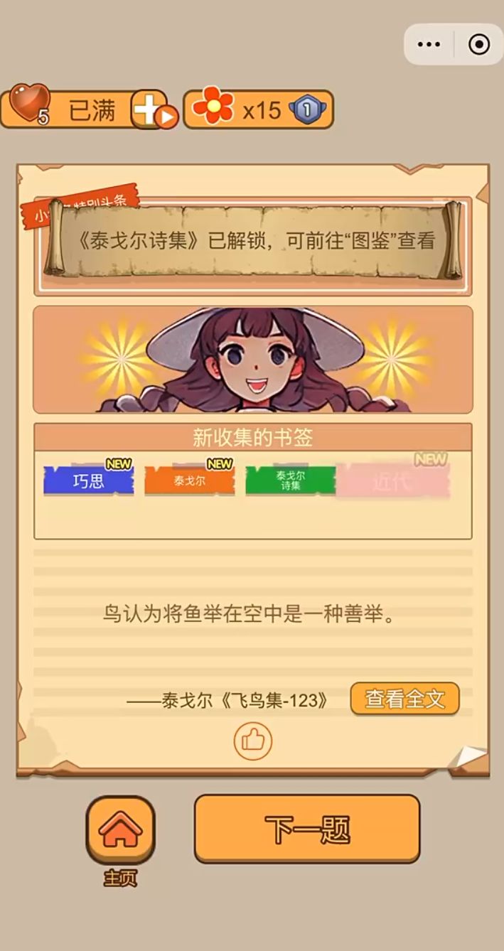一开始玩的时候还真有点新鲜感,偶尔翻到上学时背过的段落,拼起来的时候居然还有点怀念啊,而且有的纸条里藏着网络梗,冷不丁看到还会笑一下,美术风格也挺清爽的,看着不费劲