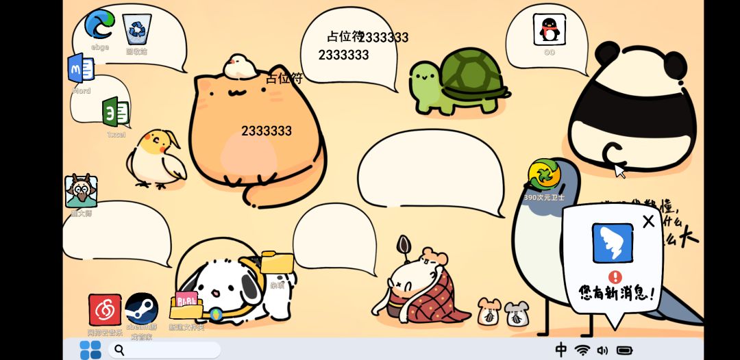 2D卡通画风,最初的桌面很混乱,各种软件和游戏都是日常常见的,突出代入感。文件夹在移动过程中会形成物理撞击效果,吞噬的效果很明显,就像在一个文件夹中放入图标,有少半部分会外显,和电脑显示基本一致。鼠标在选中新建文件夹为目标时,背景音乐自动切换到相对紧张的节奏,临场感增加了。