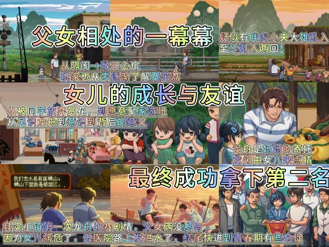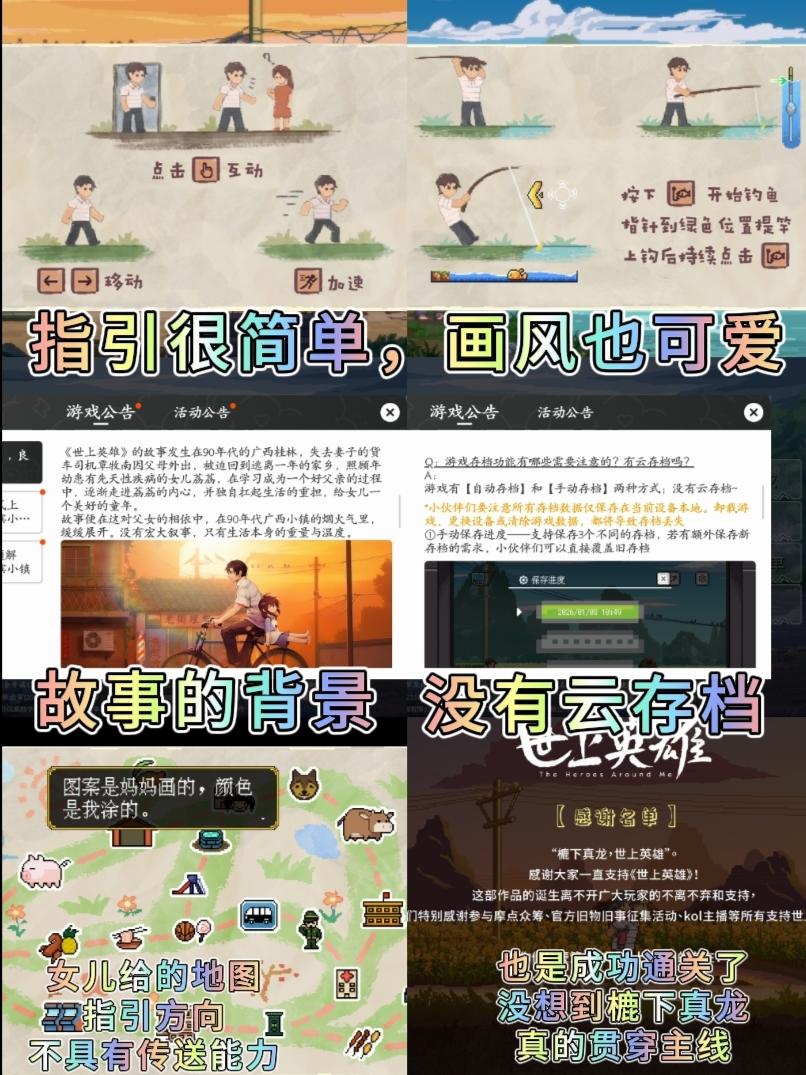 ✿「玖儿•剧透处有提醒」“真实而不真实,释怀而不释怀”“小游戏难作用,长剧情无跳过”这既是玖儿通关游戏后的感慨,也是本篇评论所奠定的四大方向,如果您能够耐下心往后一瞧,想必会明白这四句话,为什么会是玖儿的肺腑之言。当然,也需要说在开头的便是:“如果你真的能够静下心,去玩一款纯粹的剧情游戏,那么九元的价格并不算作昂贵;反之,企图在纯剧情游戏里,想要一些操作性的,只能是抱憾而归。”❀——❀————————❀——❀✿注1.游戏已通关,在隔壁买的,此处就不再付费了,需要额外说明的是,游戏的登录是需要检索账号是否有购买信息的。2.对于会涉及剧透的点,会在开头处标上“慎剧透”,可选择性观看(图1也涉及剧透,图2.3不涉及,可以自行选择拉到底部查看)。3.本期作图有些偷懒了,没有重新调整每个图的长宽比例,所以裁剪之后有些糊。4.本篇测评收益暂源于平台相关征集创作活动。5.本篇测评正文共3.9字,请各位master务必选择观看~❀——❀————————❀——❀✿【目录】▌真实(涉剧透)▌释怀(涉剧透)▌小游戏▌长剧情❀——❀▌【真实】(慎剧透)“艺术源于现实”“艺术会再加工”因此对于一款游戏,自然会同时出现真实与不真实的两面,甚至以魔幻现实主义闻名的《大多数》,既是对穷苦底层被逼远走他乡打工的写照,也有下个象棋就能不断薅钱的设计。「1.1」游戏的真实点在哪?跑长途的父亲、不见的妈,严厉的老师、身体不好的她。覃茁荔,一个爹不管、娘不在的娃,因为只有爷爷奶奶照顾,即便本性不坏,但很多时候都会“倔”;而一个不知如何照顾女儿的爹,在父母不得不因为小妹怀孕而去照顾小妹,只能无奈放弃去“跑长途赚钱”的想法,通过跑点短途、来抽空照顾女儿。这是父女两的写照,很真实,甚至很像不少留守儿童的侧写,而围绕父女两展开的剧情里,无论是严苛抓成绩的张老师,还是因为身体原因的顾虑放弃和覃茁荔一起玩的同学,都在“真实一般地”推动着剧情的发展。以至于“不想学!不想写作业!”成为了只有二年级的覃茁荔的反复表述,而在父亲的强威之下,荔荔终究没有反抗能力,哪怕再不愿放弃看电视、也只能听取父亲的话去睡觉。当然,像是经典的“孩子病倒、父母心急如焚”的场景,也是经典到不能再经典的了,至少当年小学写作文常用的就是这个事件。「1.2」但玖儿为什么又要补个“不真实”呢?答案很简单,在游戏里的镜头运转下,即便有严苛到极致的张老师,另一侧也有给孩子提供心理关怀的陈老师。而且,即便父亲再严厉、凶狠,面对女儿的“叛逆”,也没有发怒到动手,只是选择没收女儿的玩具和漫画书,甚至因为女儿哭闹这是母亲留给她的时候,父亲还犹豫了。如果说上述不真实的点,在于游戏剧情采用的剪辑技巧,以及父亲对女儿的严厉中还保留了一丝丝“放纵”,而非绝对的“约束”,那么最为不真实的,则是来自成年人的道歉。「1.3」作为严苛监督学习的张老师,因为不认识“牛蛙”让荔荔罚抄,但面对荔荔父亲的肯定后,张老师没有选择嘴硬、或者用其他话题否定荔荔;作为愿意关怀荔荔的陈老师,因为见到荔荔看漫画书而被张老师留堂,主动对荔荔父亲表示道歉,是她见到荔荔那么可怜、似乎能从漫画中得到慰藉,才提出可以上课看漫画书的建议,而且举例提出荔荔对他人近乎细致入微的关怀能力;作为荔荔的爷爷,因为收拾时把荔荔的日记本不小心收走,面对荔荔的哭闹,第一时间是否定,但被荔荔父亲找出来后,也敢坦率在荔荔面前道歉。即便是玩家所扮演的荔荔父亲,在荔荔做数学题时,自己实在算作答案,面对荔荔的纠正,父亲第一时间是肯定自己学习并不好,并且让荔荔在面对事实面前、一定要坚持自己。「1.4」真实吗?真实,但也不真实。无论其中有任意一环,让情绪高于理性,让打骂取代说教,都会让这则故事,难以被圆下去——其中显得最为“不真实”的一环,还是父亲发现荔荔把饭菜丢垃圾桶,而且荔荔开口否认。无论是撒谎,浪费粮食,对于一个近乎刻板印象的“父亲”形象来说,但凡冲动一点点,都难免有皮肉之苦;但是游戏中的主角,第一时间却从荔荔口中得知做饭难吃、甚至没烧熟的回答,即便如此,主角也愿意“按你说的去做”。玖儿真心想询问一句,这种情况,真的真实吗?想过无数种可能,责骂、反驳、强压,甚至直接带孩子出去吃,却没想过愿意为孩子主动去改变。❀——❀▌【释怀】(慎剧透)如果说游戏的前半段,是围绕“真实”展开叙述,那么后半段,则更像是围绕“释怀”来展开。而且这个释怀,在游戏的结尾,达到了真正的巅峰。「2.1」玖儿一直有种感觉,就是《世上英雄》这款游戏,本身是给类似“荔荔”的这个群体、构思的美好路线,但因为是为了尽可能的实现“美好”,就需要拿出“不美好”的一面,从而来实现。荔荔因身体不好,无法和同学去赏花?没事,父亲带着去;因身体不好,无法和同学玩捉迷藏?没事,父亲可以背;不想写作业,所以成绩不好?没事,不叛逆了就提高成绩(这一条是最不起眼、也是最离谱的)。...母亲留下的磁带?没事,可以修复。父亲溺入了洪水?没事,为了垂危且发烧的女儿,这一次可以上来!没有参与的龙舟赛?没事,终究还是参与并勇夺了第二名!「2.2」游戏有太多太多的点,后半段更是让玖儿感觉“哇!不要啊!哦~释怀了~”。尤其是女儿曾经无