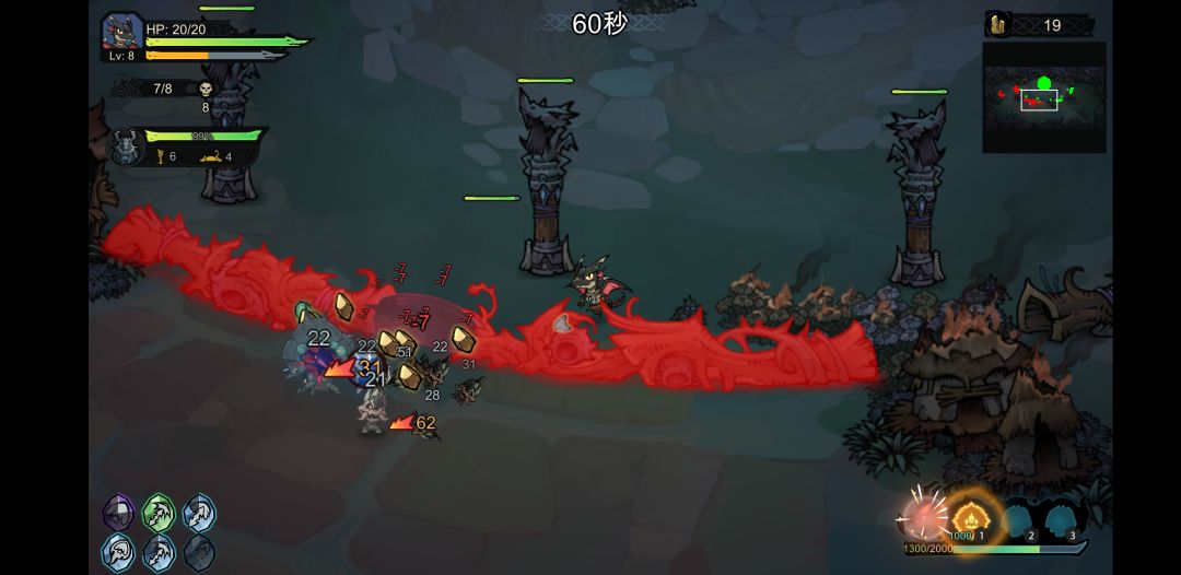 肉鸽塔防游戏,有可控的主角,靠近建筑可以对其升级,增强防御工事。与类吸血鬼肉鸽游戏一样,局内有经验值体系和局内养成,组合搭配空间很大,金币的使用有统筹策略。主角的输出主要靠技能,总计六个技能槽位,相同技能可以二合一晋级。主角靠近怪物会自动攻击,手动走位即可,防御圈外围随机刷树,打掉有收益,可以进行探索。怪物进攻以波次进行,波次之间可以进行配置调整,所有波次怪物都消灭即可通关。