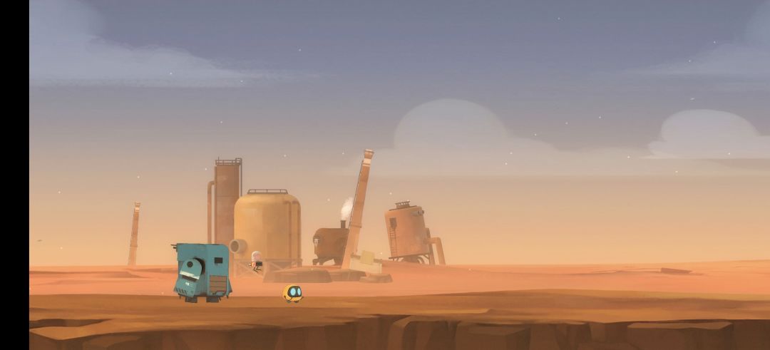 小机器人艾比掉进了深坑,大机器人迪迪通过磁铁将艾比吸了上来,这块我是真没想到哈哈,不过迪迪的小白鸟不见了,于是两人踏上寻找小白鸟的旅程,一路上碰见许多被遗弃在家的各类机器人,收集者,乔,森还有一些记不得名字的,问起他们主人的去向,都提及了一个地方,那就是«大都市»,是一个无比美好无比自由在那里可以实现永恒的完美居所,不过真的是这样吗,我带着疑问继续玩,因为沿途所见都是荒漠没有绿植,明显是一片末日废土风。中途我们遇到了杰米(一个脑子?),他是大都市的总设计师,他说那里可以修复他的身体可以变成真正的人类,一开始我真的觉得他是一个自私自利的人,他每次遇到危险都仗着会飞逃跑!那么很显然他不是,在我们终于到了大都市之后,所有遇到的人都告诉我们不要碰电路(?欲盖弥彰)而且给我一种被设定的感觉就很很ai的感觉,不出所料艾比和迪迪果然合力破坏了电路,才得见真实,原来这个大都市不过是个虚拟都市,人们确实没有死亡,所有的东西都可以永恒,这与杰米的设计完全不同,所以杰米跑了,艾比和迪迪担心杰米于是急忙追出去,在途中下起了大雪(这块不太明白,可能是烘托氛围吧),迪迪和艾比会觉得冷,在终于找到杰米之后,路过了加油站,三个人生了一个小火堆在一起取暖,哇真的很温馨啊,三人又踏上了旅程,迪迪把艾比和杰米装进自己的身体里,(真的太喜欢迪迪了,缄默却默默付出,极其善良重视身边每一个人),在下坡的路上迪迪跌跌撞撞,最后把自己磕碰到严重损坏了(这时候我以为迪迪要没了😭😭😭)不过还好不是,杰米幡然悔悟,自己欺骗了艾比和迪迪,但他们却对自己真心真意,所以加入了这个团队,决定和艾比一起找零件维修迪迪,在找到之后,杰米进入了中枢,这里结局开始分支了,一个是杰米恢复身体,不过可能活不了太久了,艾比和迪迪继续踏上寻找小白鸟的路程,二是杰米继续以这副机械构造生活,和艾比迪迪一起踏上旅程。两个我都喜欢,不同的选择罢了。后面开始闪回,所有的机器人都和主人见面了,也算是得偿所愿。有个彩蛋,变成人类的杰米遇到一个黑发男人,我想应该是不愿意自我欺骗的人吧。