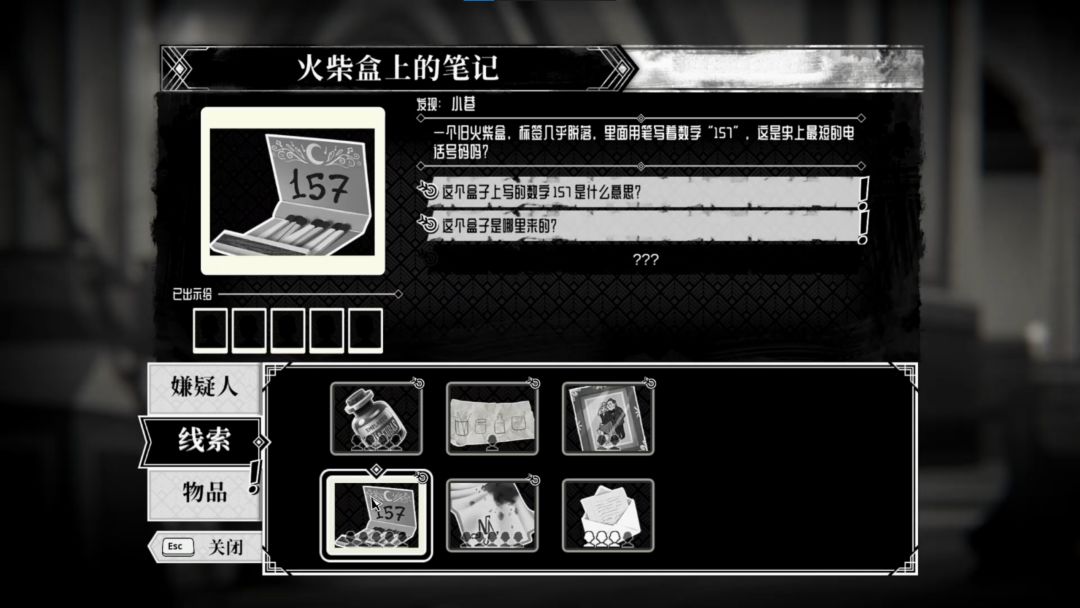 推理部分节奏很舒适,环环相扣,一个个线索都指引向新的突破点。案件目前将探索限定在小范围街区内,很省心省力,不需要跨区域跑图。目前可以询问的物品全都列出来了,不需要自己一遍遍的试错。只要问了,多少都能得到一些信息。而且询问过的物品都打上了勾勾的标记。剧情会抽丝剥茧的呈现在面前。游戏并非本格推理,重点在于剧情的叙述。推理只是过程,真正重要的是在调查途中产生的认知变化与反思。游戏最终关注的不是事件本身,而是现代生活中的内耗,自我期待与现实之间的消耗还有社会角色与成功叙事对个体的挤压。
