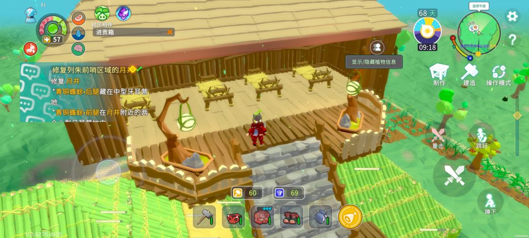 很好玩的游戏,建的房子很漂亮,可以在野外刷伙伴好感度就能获得伙伴,伙伴可以帮你战斗,挖矿,种田,砍树,准备好箱子放食物伙伴会自己吃,箱子标签设置木材,食材,石材伙伴会自己生产放进去。