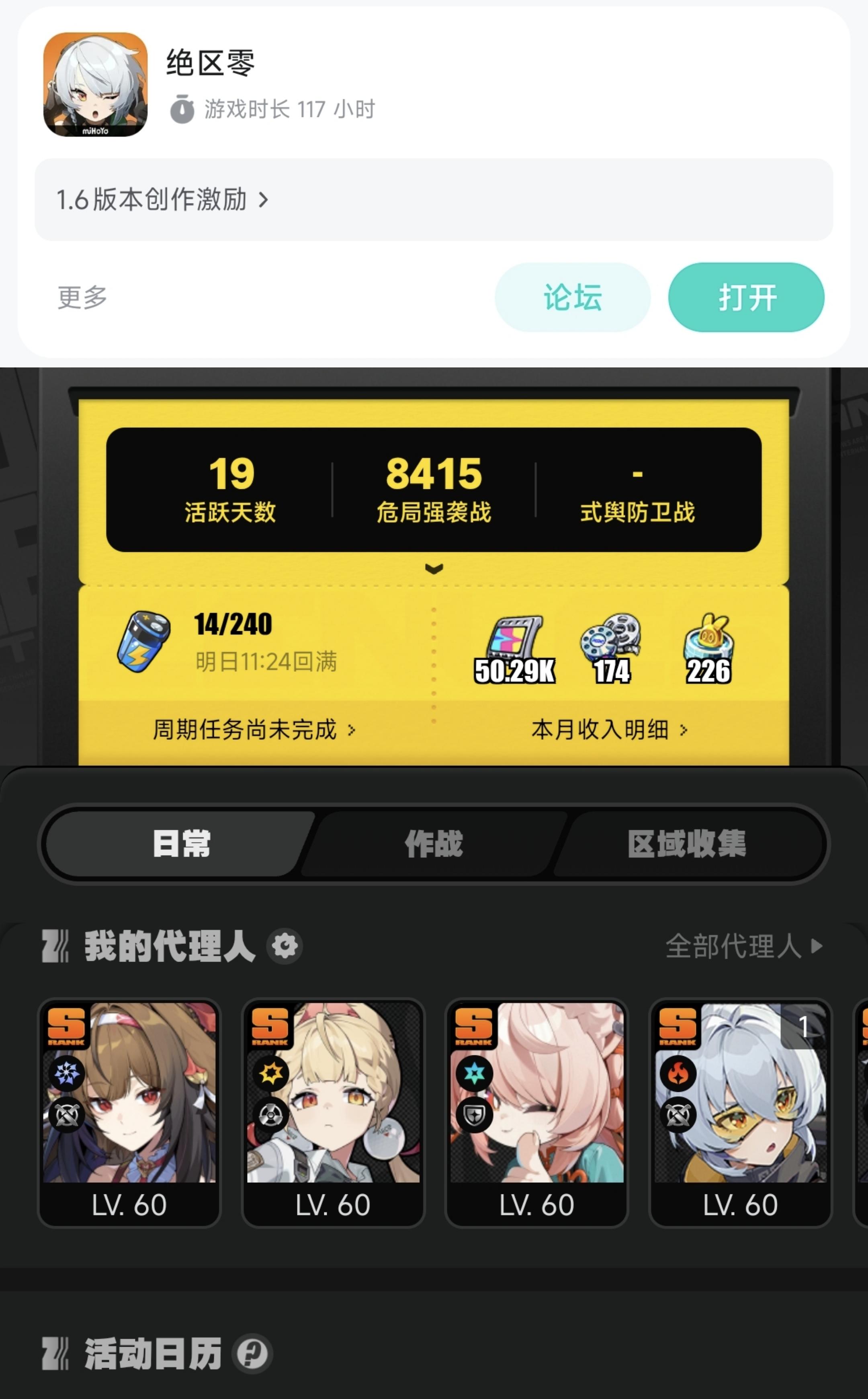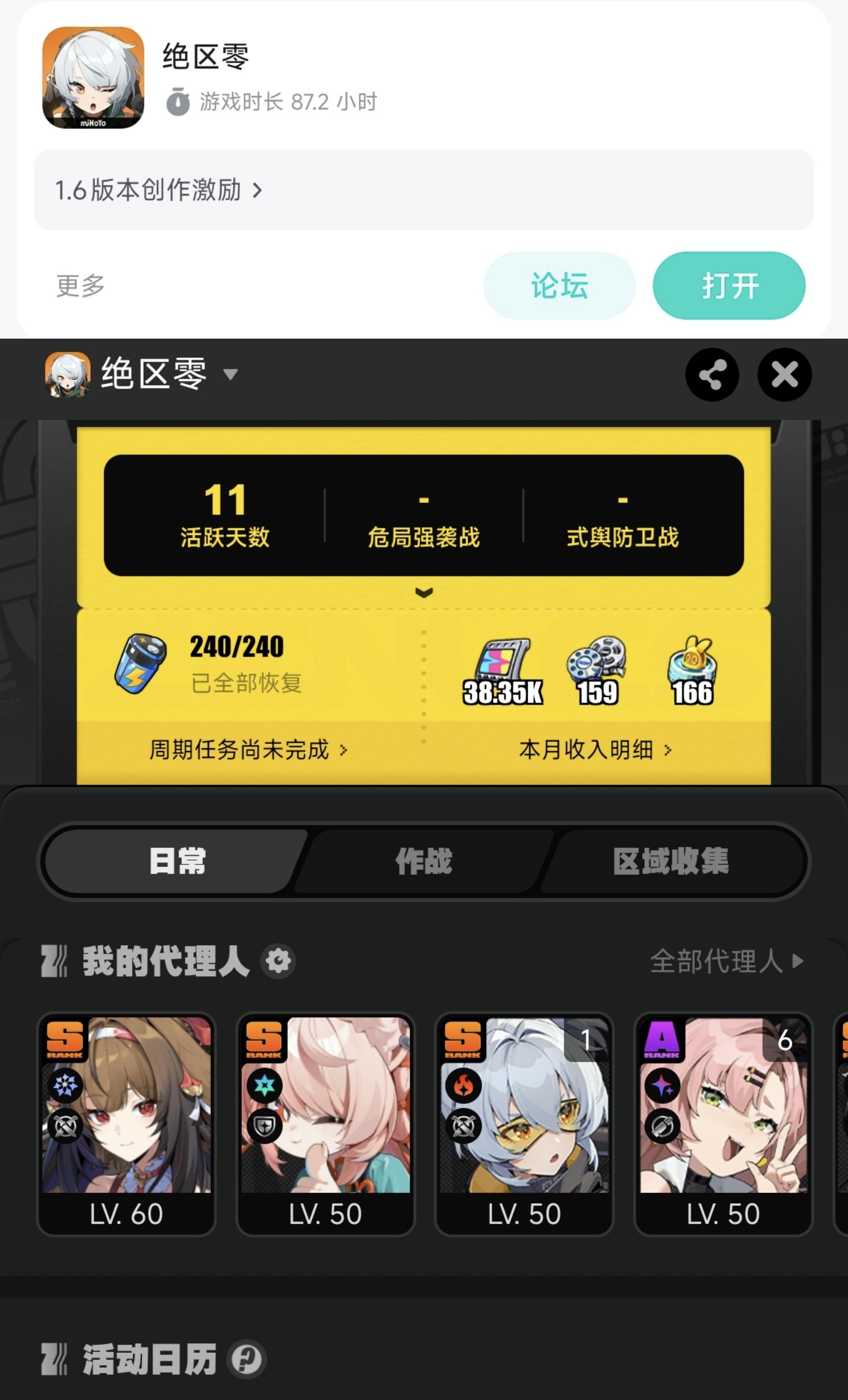 非酋平民玩家的开荒过程,因为小师姐叶瞬光入坑的。吸引我的是zzz的动作、建模、打击感和特效,所以我是没有看剧情的,到今天为止,第十九天,总共获得了“392抽”,具体参考我的游戏时长,这是可以在短时间内靠任务无脑堆砌的,甚至可以不看攻略就能够攒到很多菲林(做任务时需要),有XP真的很戳中你的时候,非常推荐大家自己创号入坑,而且zzz的表现在手机端是十分优异的。萌新速开荒,先做“主线第二季”-“限时活动”-“零号空洞”-“式舆防卫战”(深渊)-打到卡战力了,再做完主线第一季,期间不需要刻意凹驱动盘,注意等级就行。不看剧情的话,在24小时内可以做完,这就差不多有一个大保底了,可以拿下你喜欢的角色了,还要进阶的话就是。“支线任务”(蓝色的)-“养两支队伍重打深渊”-“代理人秘闻”-“零号空洞特遣调查经验谱”,到后面这里就没有什么先后顺序了,游戏的整体萌新也基本了解了,这种机器人打法虽然比较痛苦,但是时间上的收益是最短的。总之呢,我的看法是游戏毕竟只是游戏,只能陪你一两个版本,如果你刚好有时间,又觉得这个游戏有点意思,那就可以试一下,固定玩法的方式可能会让你枯燥,但是也是给你一个放空大脑的时间。祝各位友友玩得开心,十连不歪,抽抽出金。