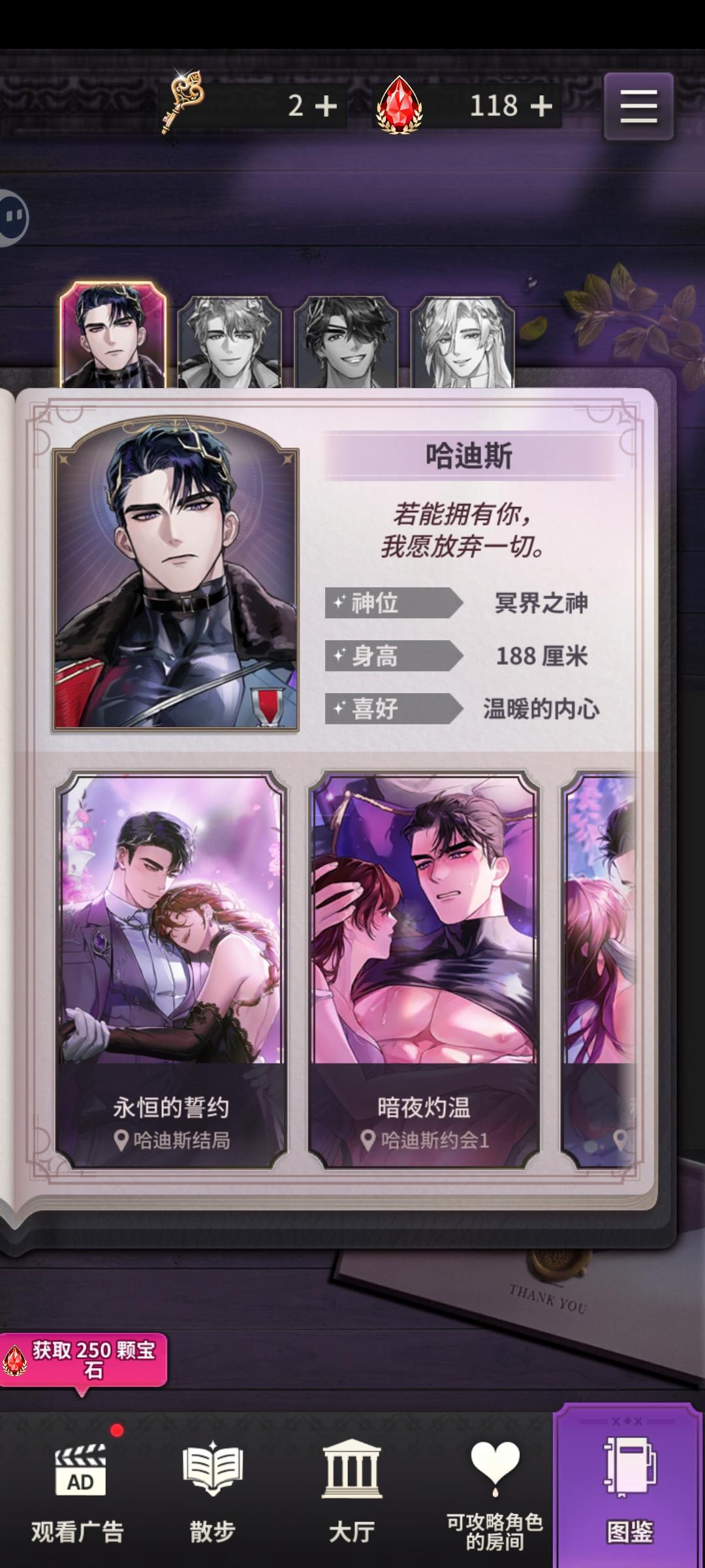 真的很好玩我觉得首先是剧情来看就很有反转也设计的特别有意思,我们个人也并不是那种无脑的,个人也很会说话不是那种傻不拉几的,剧情有时候的割舍也特别感触(因为我每个都挺喜欢的)特别是在常规剧情中还会有几个比较大尺度一点的剧情不过要用500钻解锁不过也是特别值的,剧情也很有创意之后就是男主们来说男主们也是各有各的特色而且都是成男我大吃特吃,每个男主都各有各的想法也很有意思不是那种无脑的,就很理智的当然了自主个人也可以让他们不理智,非常之有意思,男主们也不会强求非常之尊重主控,而且男主们的建模也是非常奈斯还有广告吧我觉得是正常的,而且广告时间我们也可以干一下别的事情,没有必要一直盯着屏幕休息下也是很好的,而且有广告也正常不然开发怎么赚钱还是要赚钱的吧,而且一个广告就是250钻都够玩好几个剧情了,广告也很值啊也就30秒左右,有些还15秒以下是提醒:姐妹们记得要去跑步我一开始都不知道后来过完哈迪斯的剧情才发现可能是还可以送礼物因为那里也有提示,而且我是哈迪斯的过完了重新开了,所以其实也不是很清楚个人方面:我个人觉得这哈迪斯实在是太可爱了又纯情又性感太带感了😋我还没有过完第二遍。不过过的时候真的不忍心拒绝可爱的哈迪斯啊,所以我可能也不会解锁太多男主的剧情,让我们可爱的哈迪斯被不选择实在是太有意志力了可惜我没有这个评价就是这样吧嗯对,我感觉还是非常不错的,如果我到时候有补充的还会再补充的,真的非常之好我觉得这个baibai,我一直在录屏😻
