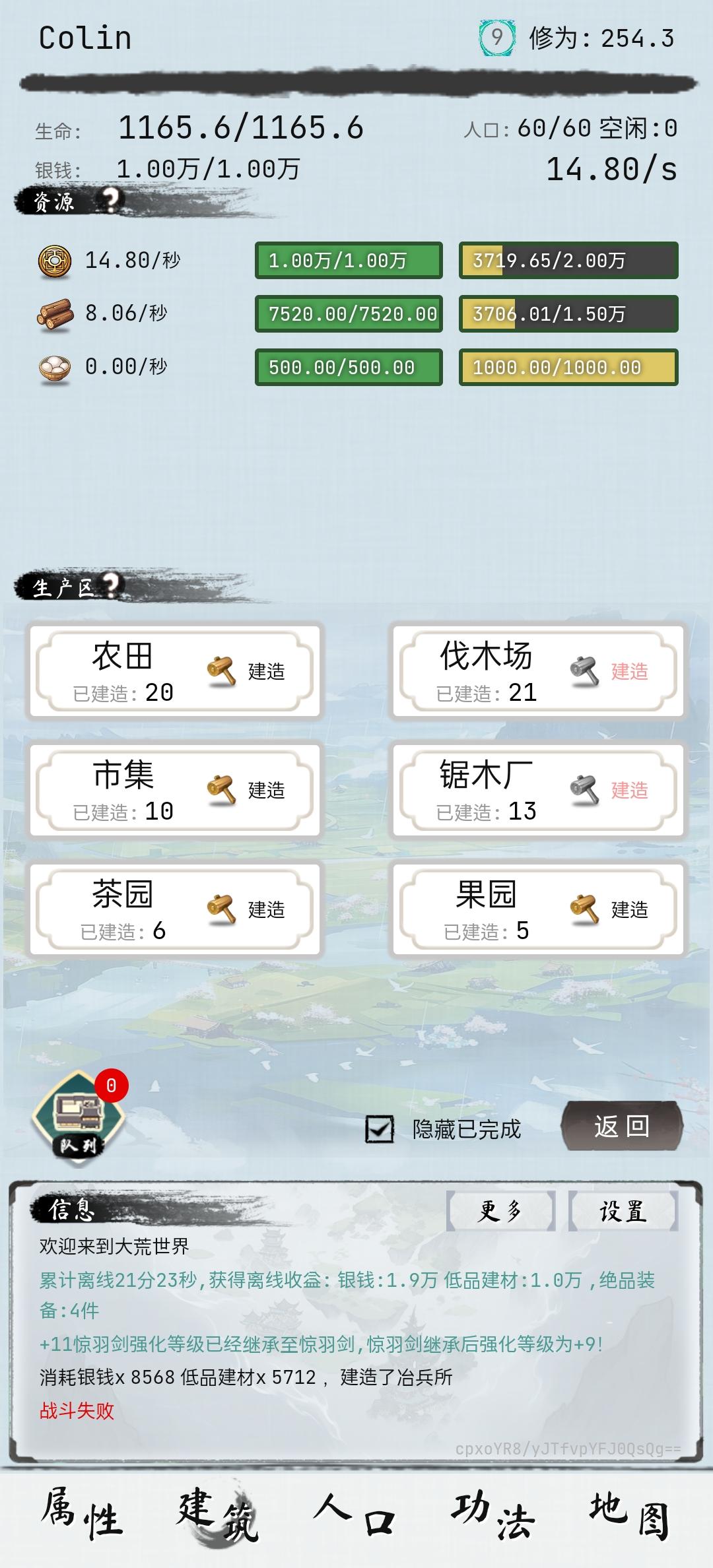 新手开局须知(人口安排就不说了,挂机时如果粮食收益为负数,收益会下降)