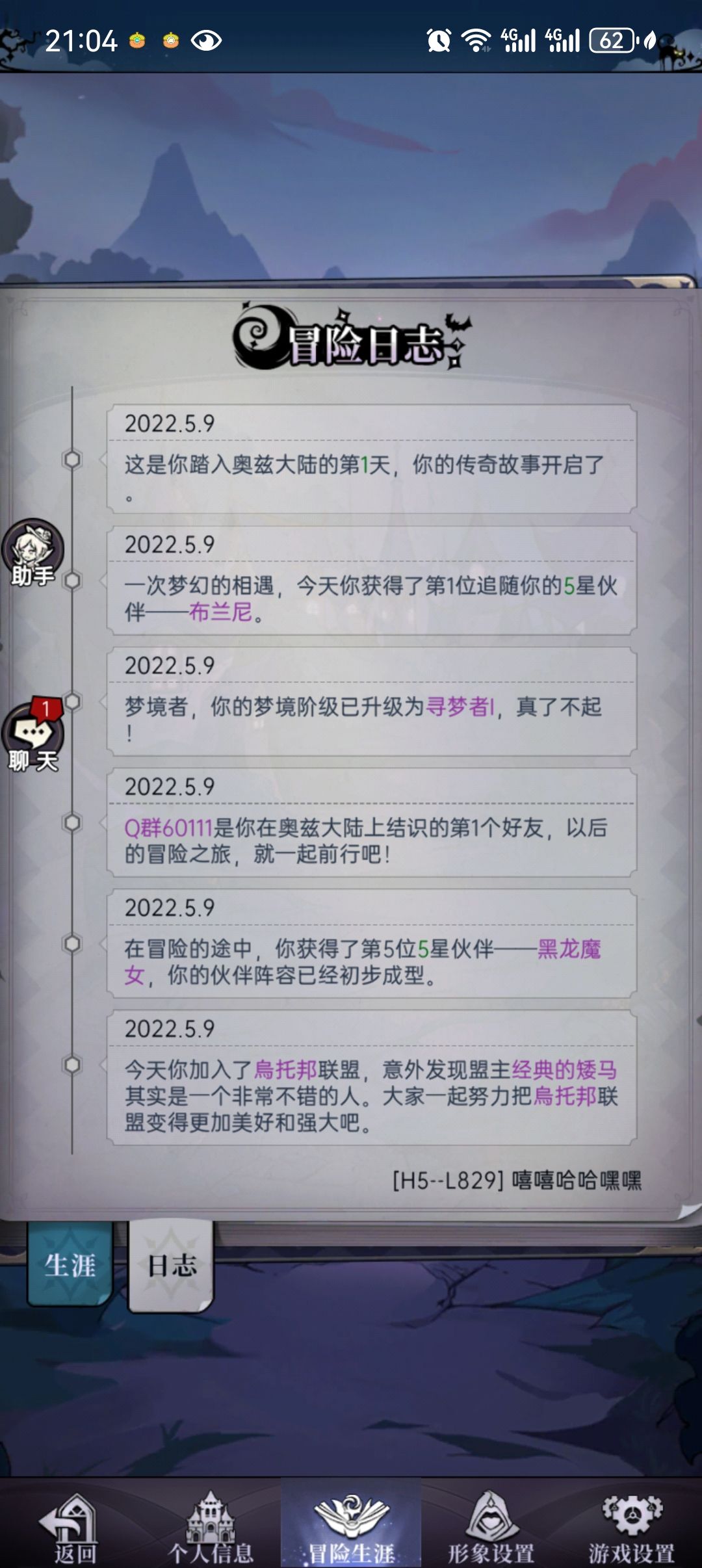 22年就开始玩了哈哈零氪 我自认为这个游戏开始很无聊 而且还需要时间来肝角色 图3是我精心养的罗宾