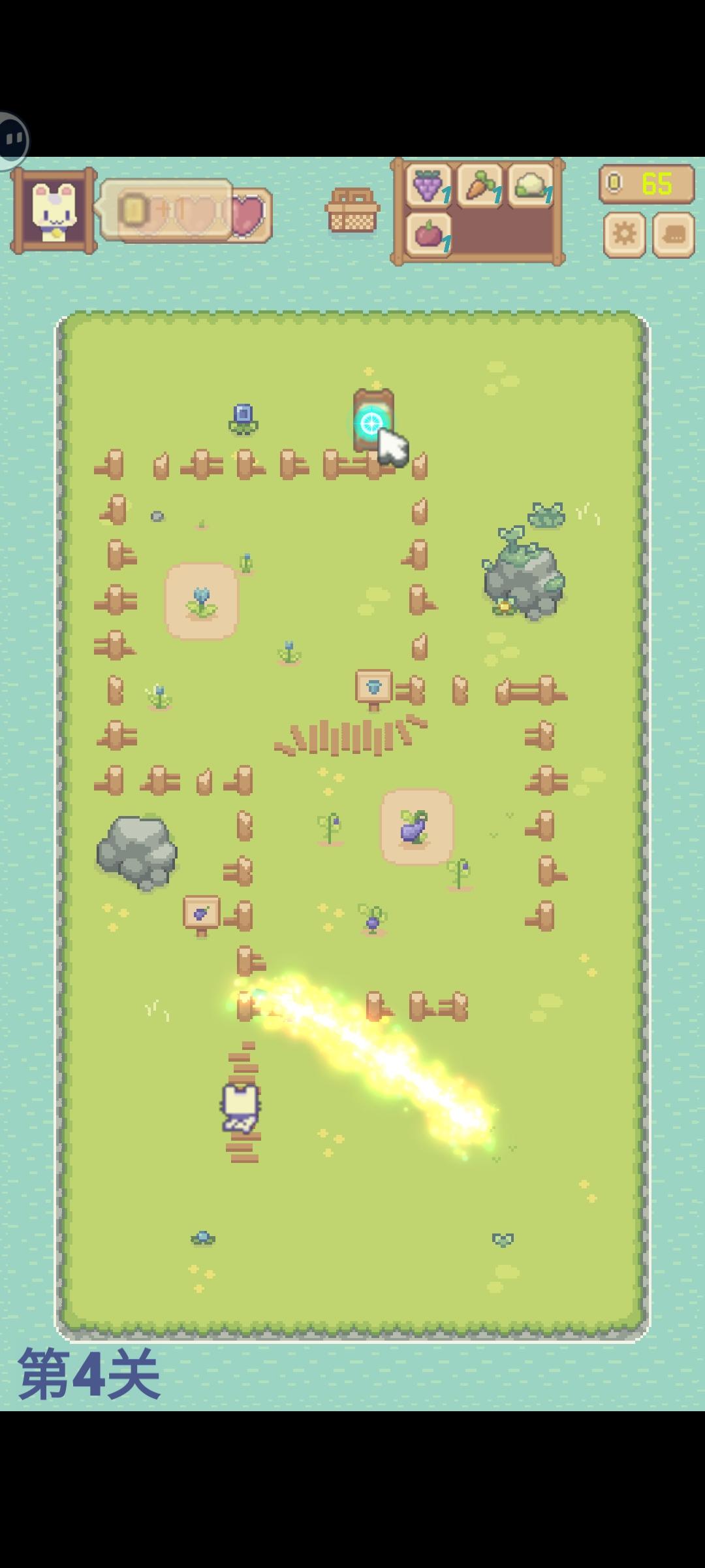 挺有意思的休闲小游戏,点击兔子开始让其自由移动,兔子会按照类似弹珠的规则移动,但有时也会自己改变方向。手动操作划线可以形成物理阻挡,让兔子按照折射轨迹移动,从而探索整个区域,最终兔子到达传送门位置即可通关。关卡内可探索的目标主要是蔬菜,可以获得三星评级的同时,也是外围养成的重要道具。操作非常简单,有引导介绍,上手不难。