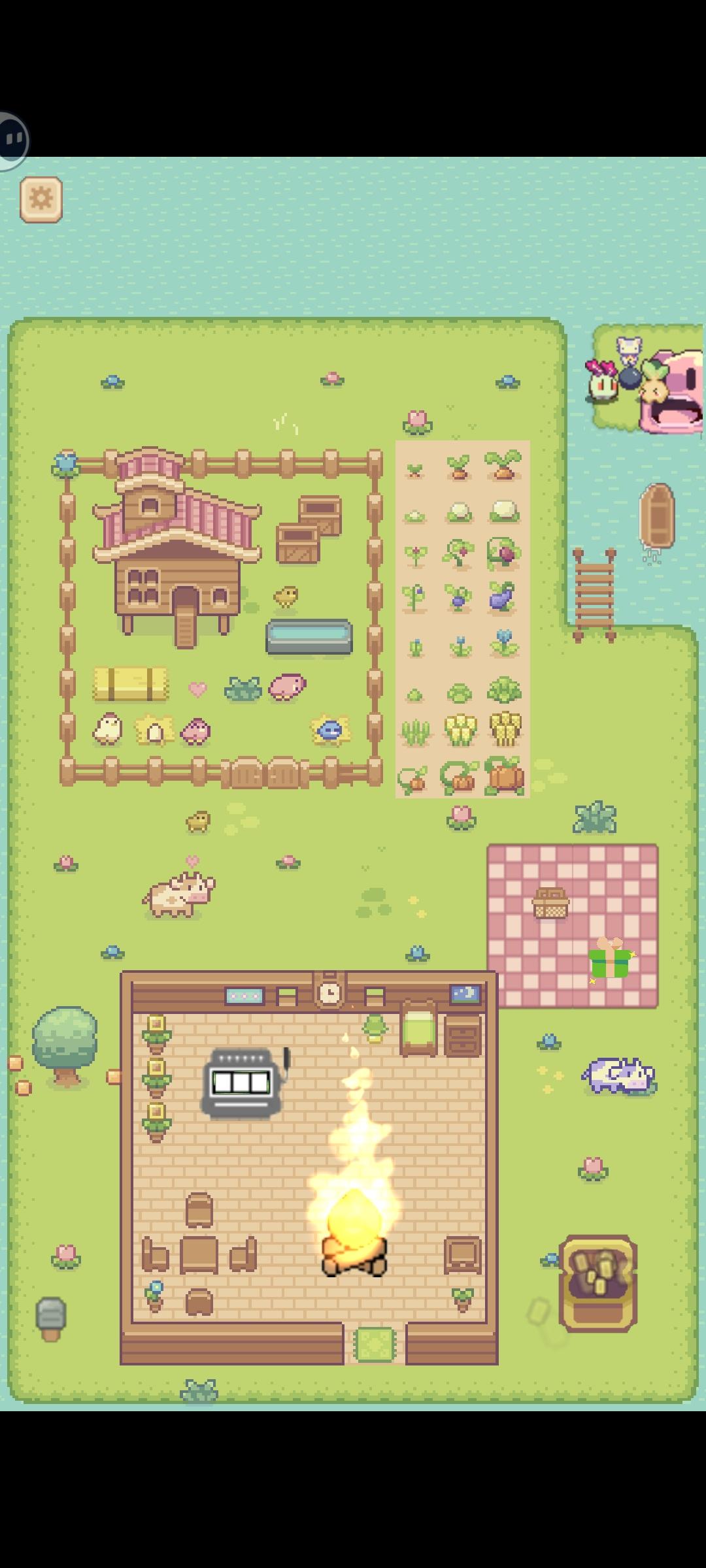 2D像素画风,界面结构简单,UI品质较好。小兔子造型可爱,有简单的行走动作,放置状态下感觉也像是一蹦一蹦的。部分场景物件可以破坏,交互效果较好,传送门位置明确,特效意思表达简单易懂。