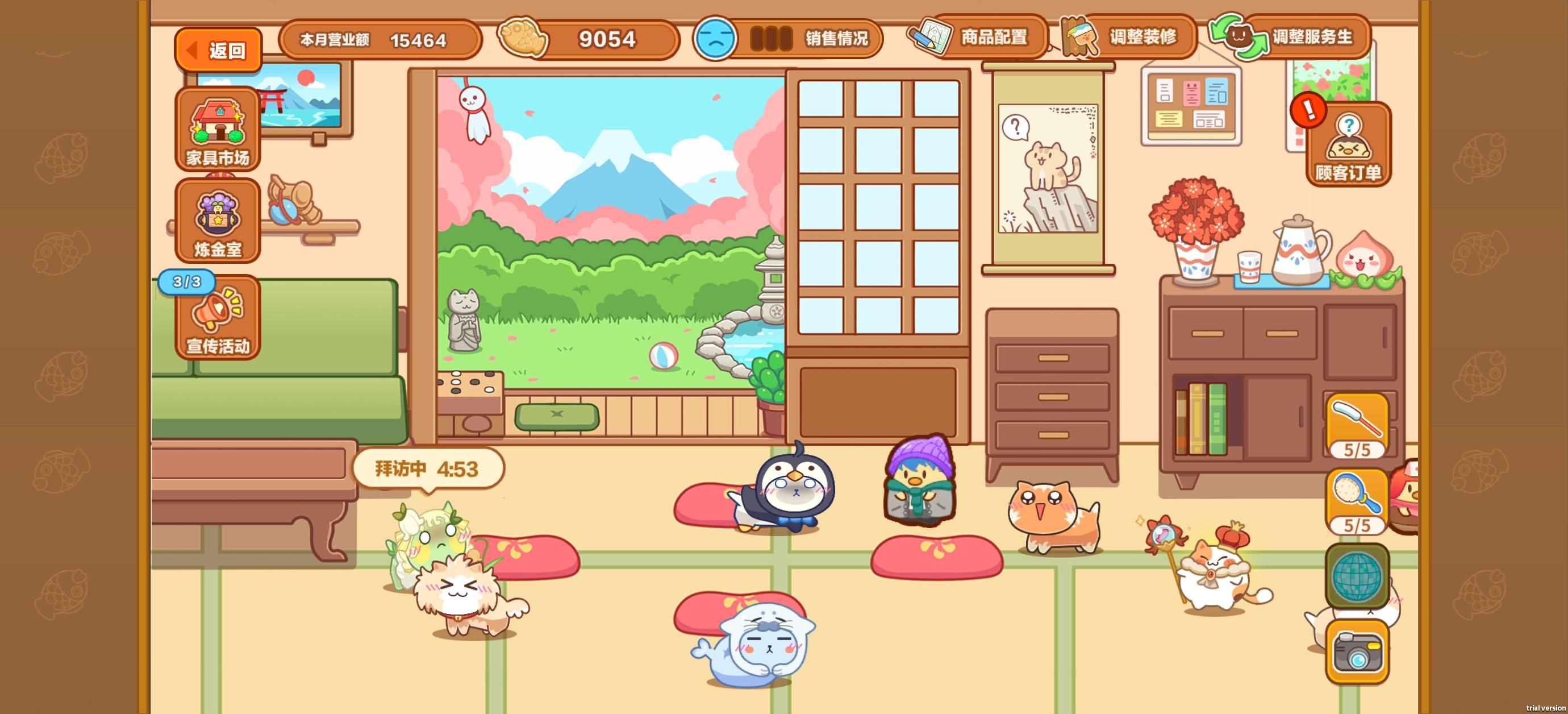 4.可以建设猫舍,喂猫粮铲屎喂水装修。但是给猫猫换装价格很贵。不过休闲游戏,不花钱充值也不影响整体升级。
