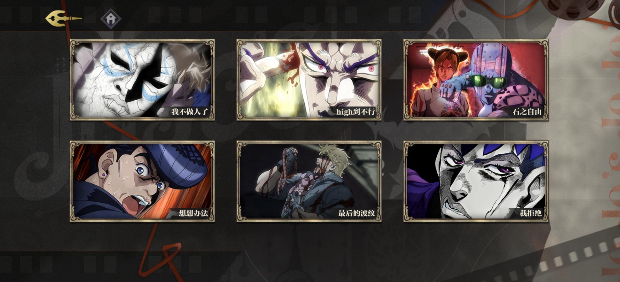 但是呢我没有看到第二部和第三部主角和BOSS大概后期会出,除了我说的角色,基本都有,关卡打过的是给不了重复材料我打的时候没有,不知道是bug还是本身设计这样的,总得来说因为很喜欢jojo所以评分我不给低,很多工艺和美术我都很喜欢,抽卡是比较新奇的竟然是达比玩扑克那个片段,这是我没想到的,测试没有体力限制,剧情卡等级。