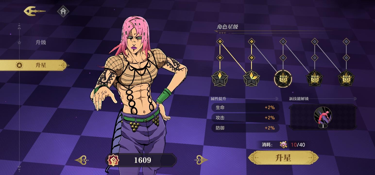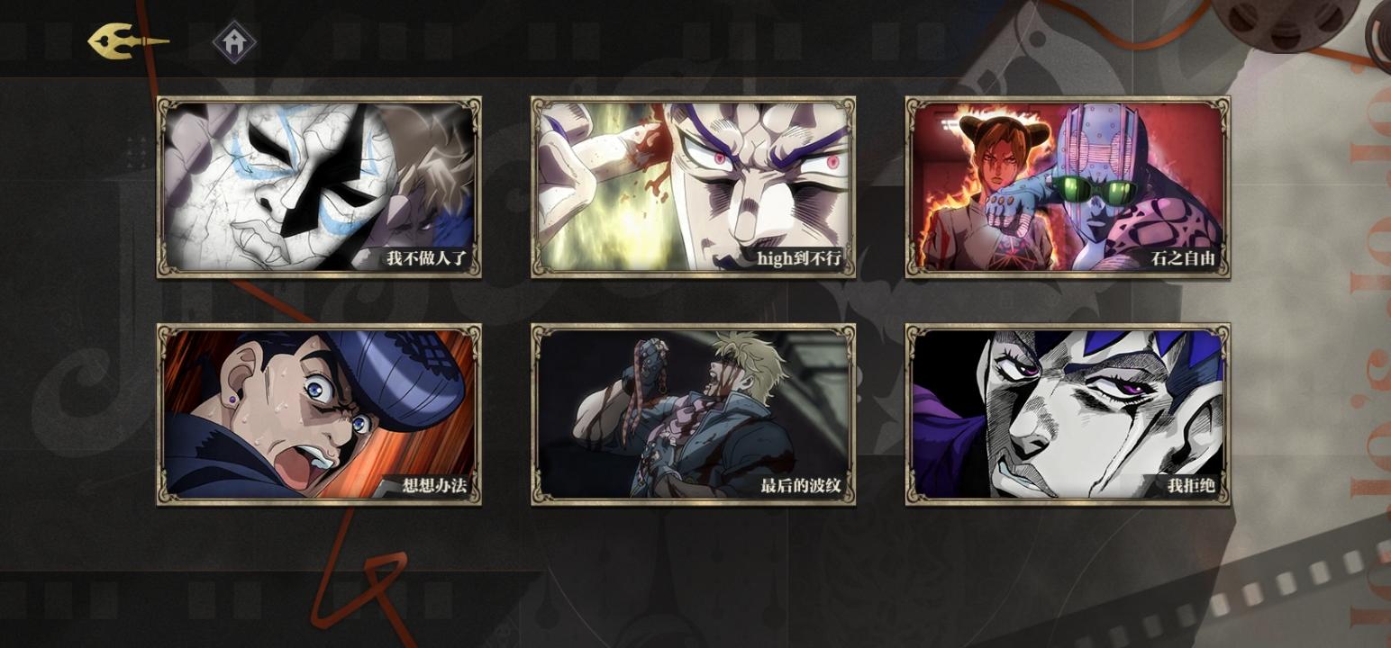 然后抽卡是和大达比玩牌,翻开面前的扑克牌抽,这个创意我挺喜欢的,并且r卡也有3d出场和大招动画,目前看来虽然主线是第五部,但一到六部的角色都有,一些比较冷门的角色也有,不过角色暂时只有50个。