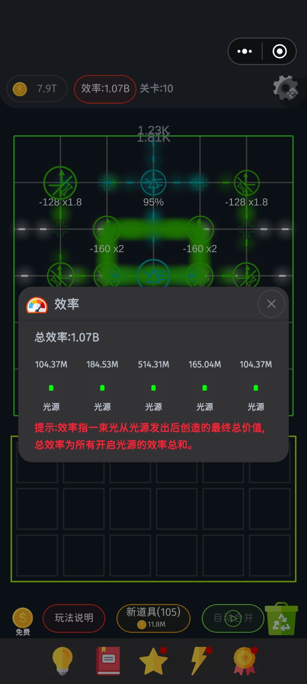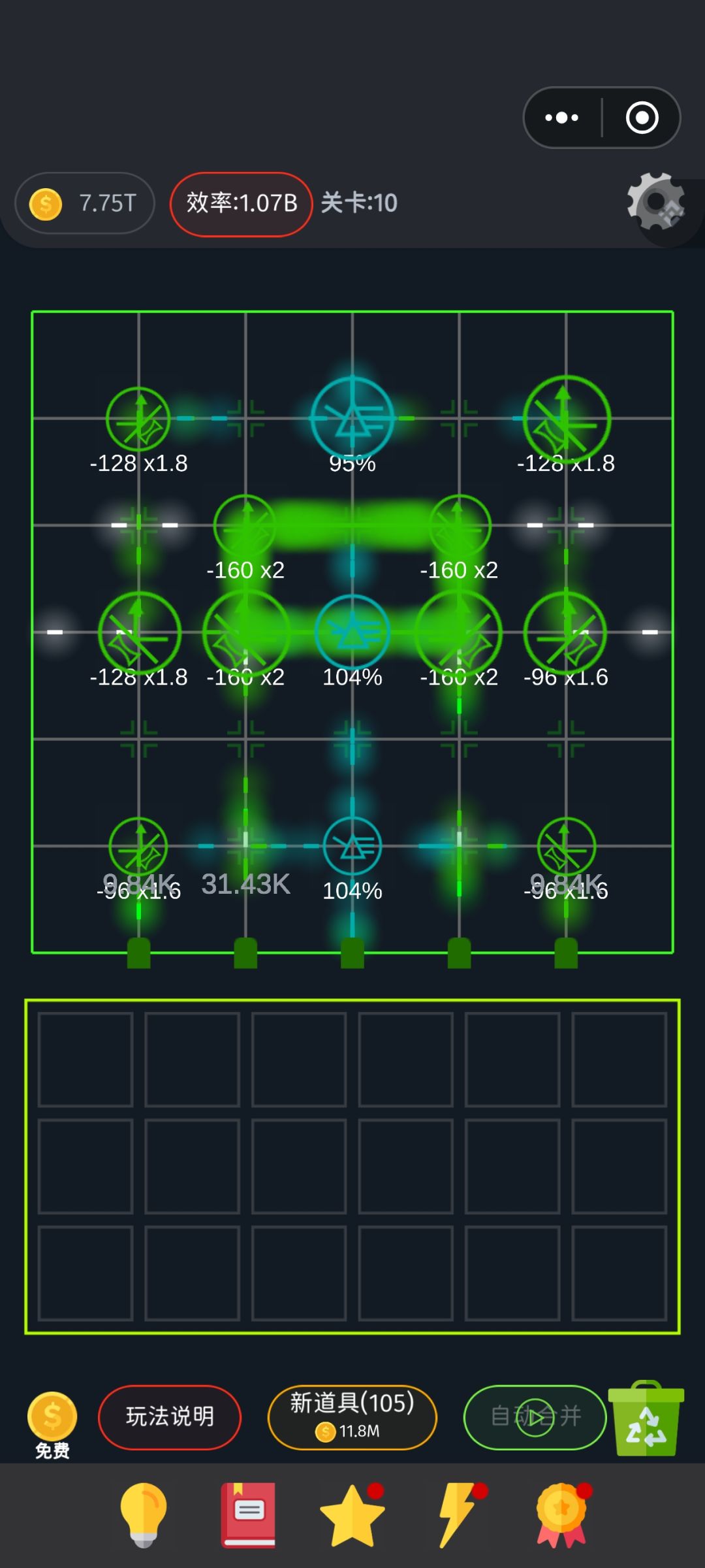 我宣布我这个应该就是最优的了,如果后面把初始值拉高,直接加点值可以去掉。这个布局的核心就是最中心的四个循环,倍率越大越好,打满30个循环点,要把五条发射出的例子都调整进去这个循环 进去至少都是1.5∧28出来至于你们说前面官卡难过的,其实有个小技巧,只要一直叠倍率,并且只叠一个,一般都能跌到1.6 于是只用这一个方块,不断调整这个块的位置到四个角去接同一个例子,让一个粒子不出去,然后翻30次,那就是1.6∧30次方,远远大于过关要求