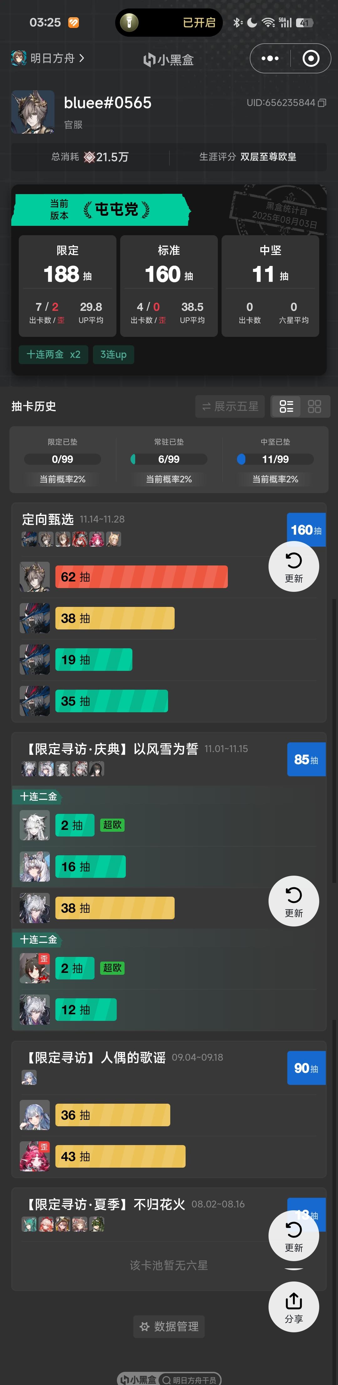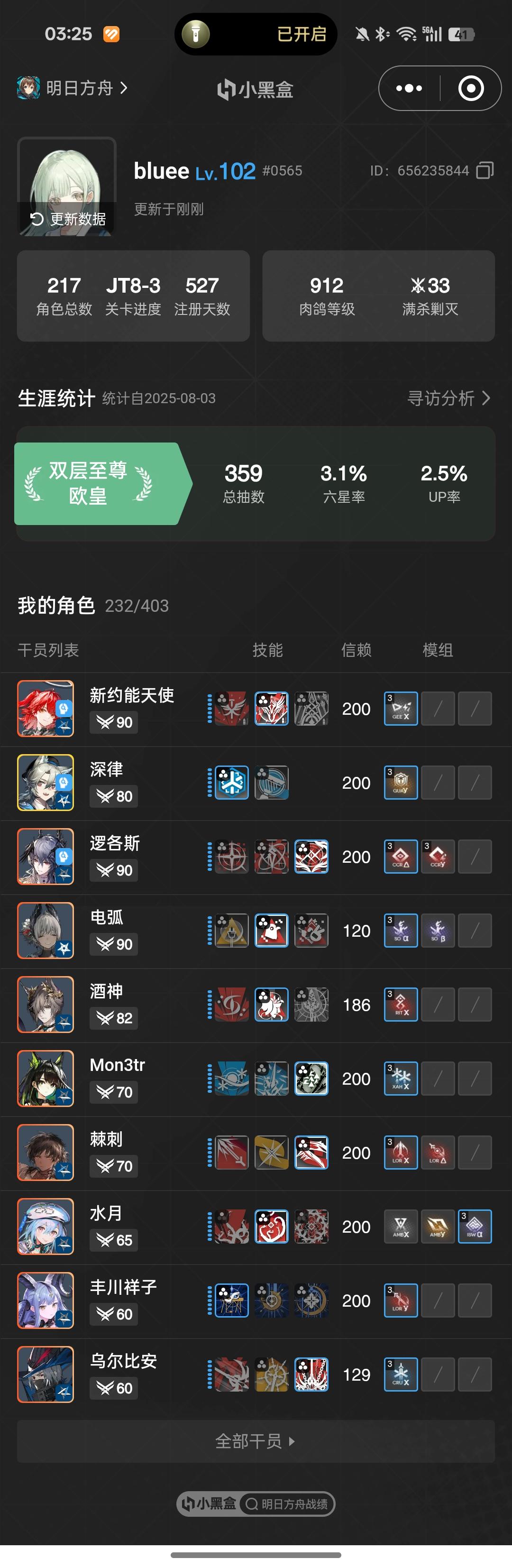 读大学后换了手机,即使想要找回原来的号也不可能了,当时一直用验证码登录。高考完新开了一个号,但是运气太差就又删掉了。大二的时候看到了银老板不融冰新皮肤和小逻的立绘,我觉得太好看了于是又下回来用新手机号注册了一个新的账号,这个账号真的对我很好ヾ(o・ω・)ノ