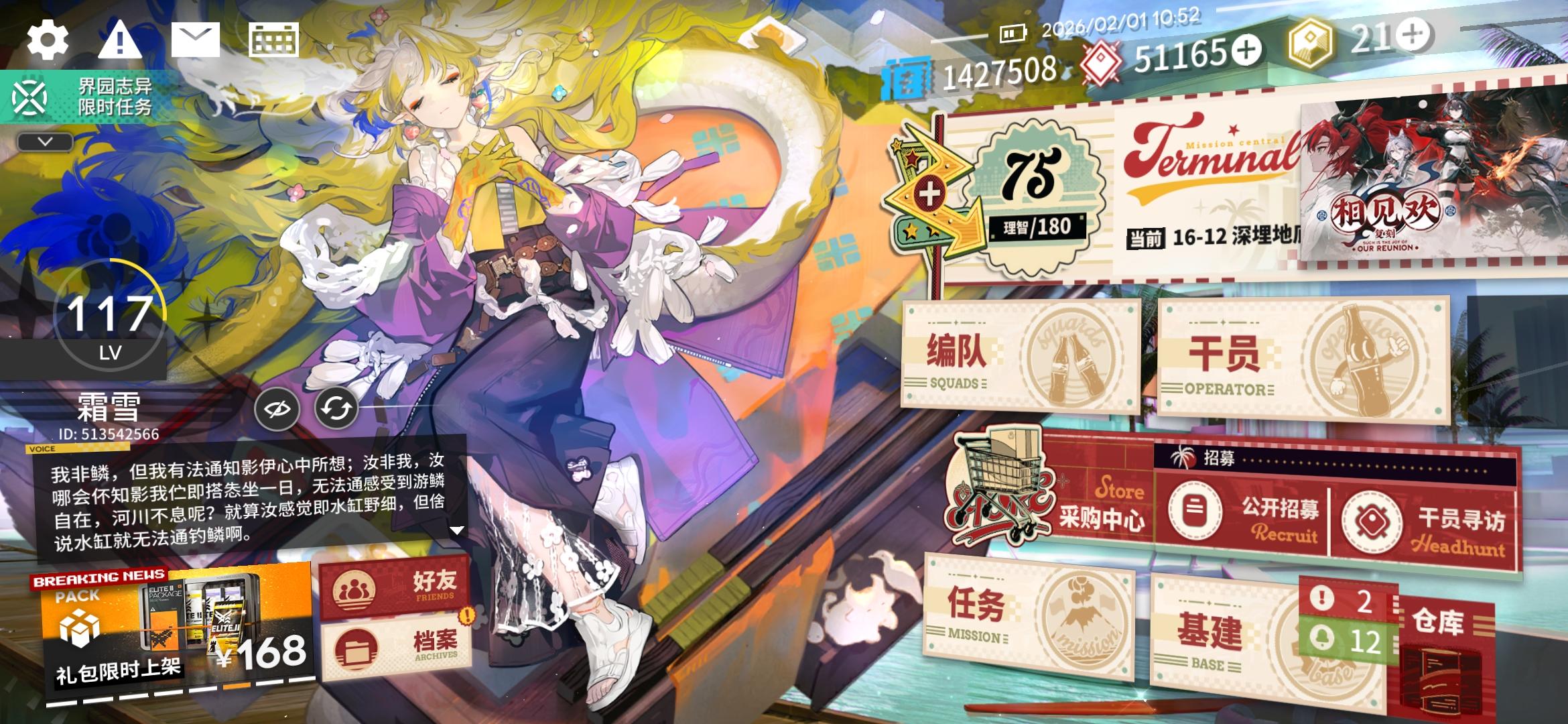 至于网上说的那种什么,肝了两个小时还拿不到十抽,只能说可能是其他二游玩习惯了吧,习惯那种主线一过,直接把当期up抽出来的爽感,终末的是肝了一点,但是它能保证一个版本的奖励,肯定能让你出当期up,甚至还有多余,还有那些说什么谁不想十抽出两只S福瑞的,福瑞也是很强的好吧,至少在物理队,再说了,你主控干员可以换成小陈/管理员。