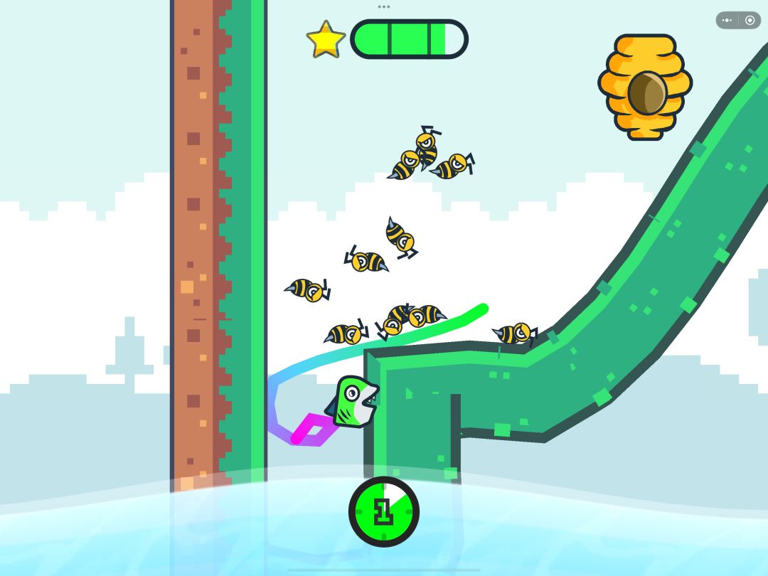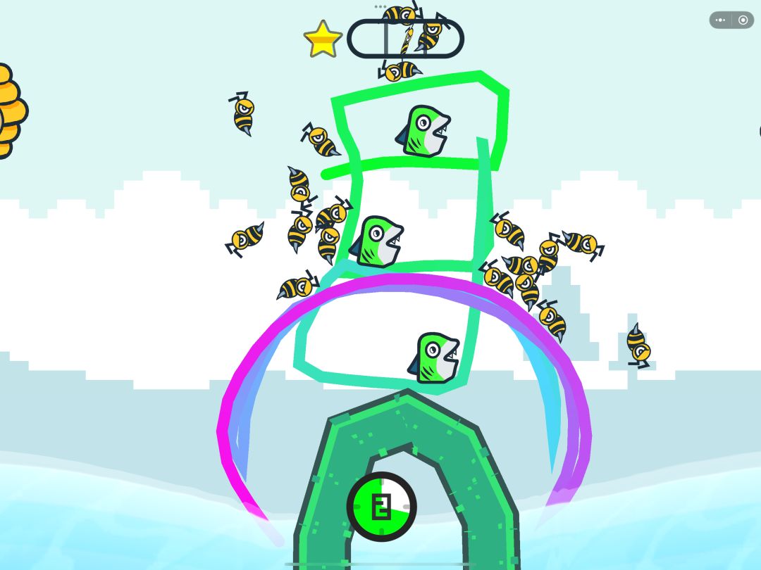 2.某些场景里面的画线操作真的很难评,不知道是不是太灵敏了,有的时候画线画着画着自动中断了,也就是断触,结果还没画完就被判定操作结束,蜜蜂直接出来把小狗给叮了……尤其是小狗悬浮于平台上面一点距离的时候,画下面的时候就要尤其小心,如果是用小屏幕的手机玩,那划线的操作会碰到底部平台导致断触而终止操作的概率就更高了。