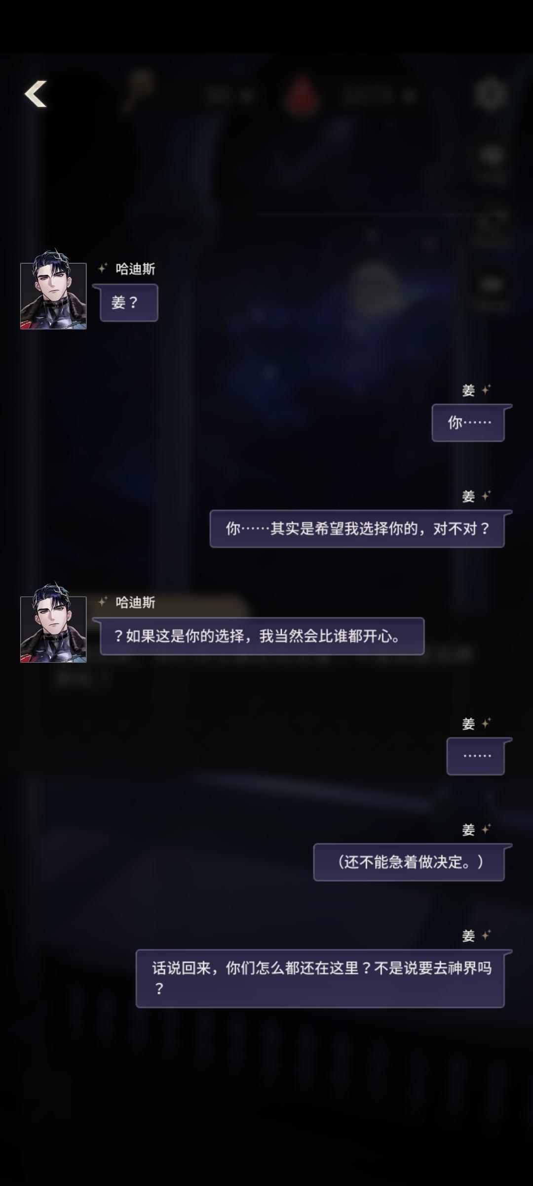 (Ps:其实后面大结局的时候大部分都跳过了,还有一些约会情节,看一些比较温馨的调侃话语等,后面的就没怎么看,直接跳过再看Log。 还有在这里面就喜欢哈迪斯一个,其他的就是轻微好感差不多。所以稍微有点拒同担,但只要不是贴脸,说什么我和哈迪斯干嘛的,我们都可以好好相处🐱)