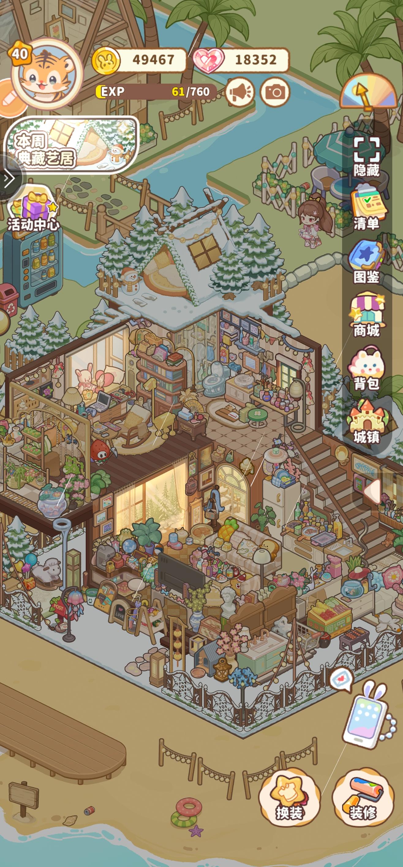 玩久了还挺上头的,没想到要结束了。小游戏玩太累了就不玩了,目前就停在40级了,第四个地图看起来特殊建筑没更新。目前把金币类家具都买了,等会再把前两个卡池也抽完。玩下来这么些想法: